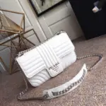 - Sliding metal chain shoulder strap with leather shoulder pad