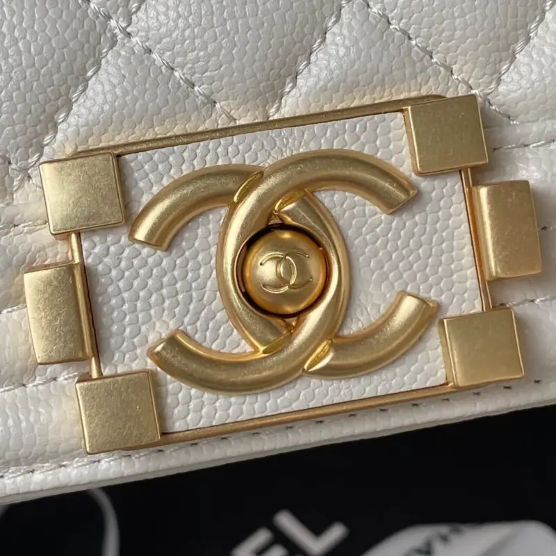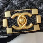 Functionality meets high style with this thoughtfully designed accessory. The bag’s front flap is secured with a polished gold-tone interlocking metal closure that opens to reveal a well-organized interior. Lined in rich brown lambskin, the inside features multiple compartments, including a central zipped pocket, ensuring your essentials are stored securely and with ease. A classic back pocket provides quick access to daily necessities.