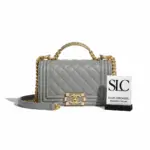 Quilted Flap Bag With Top Handle Grained Calfskin A94805