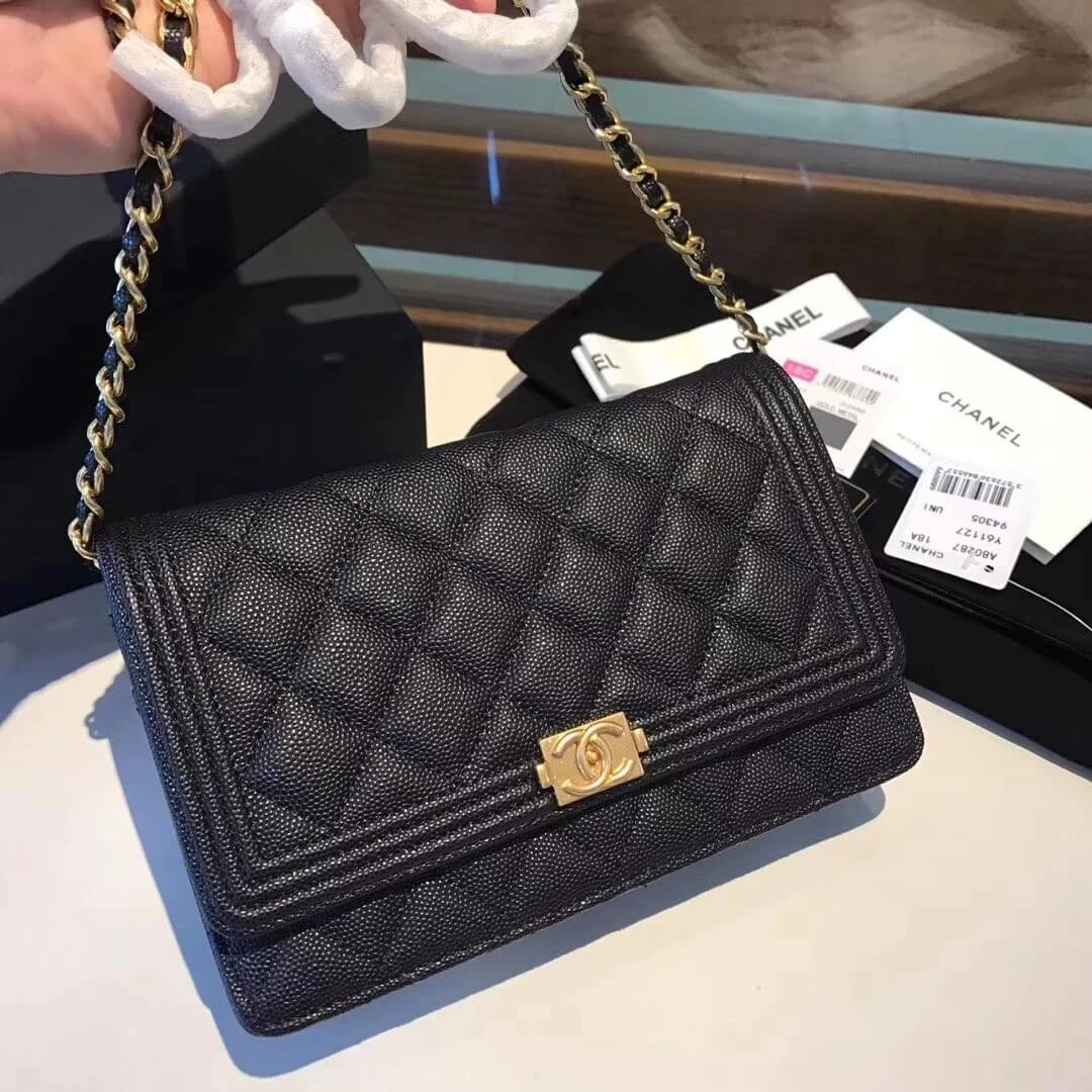 Discover the epitome of versatile elegance with this beautifully crafted wallet on a chain. Designed for the modern individual, this piece combines the functionality of a wallet with the effortless style of a crossbody bag. Its exterior is rendered in a durable, textured leather featuring a classic quilted pattern, offering a timeless look that transitions seamlessly from day to night. The polished chain strap allows for multiple styling options—wear it as a sophisticated shoulder bag, a convenient crossbody for hands-free ease, or tuck the chain inside to carry it as a chic clutch.