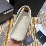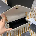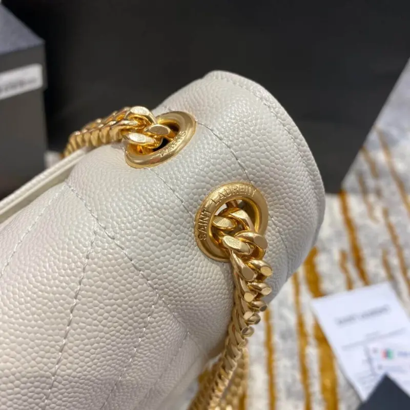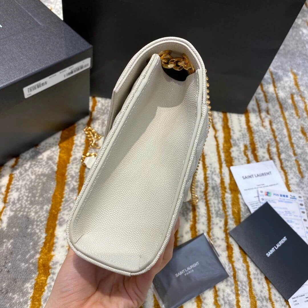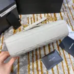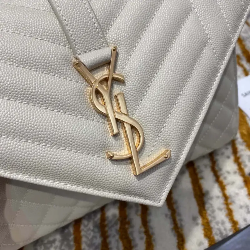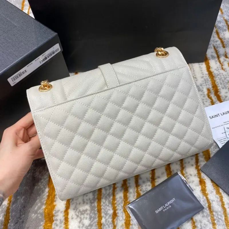 Quilted Grain Leather Envelope Medium Shoulder Bag White 487206
