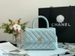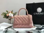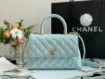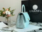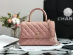 Discover timeless elegance with this beautifully crafted mini top handle bag. Made from high-quality grained calfskin, this piece features a classic quilted finish that exudes sophistication. Its structured, compact silhouette makes it the perfect accessory for both day-to-night looks, offering a touch of polished style to any outfit.