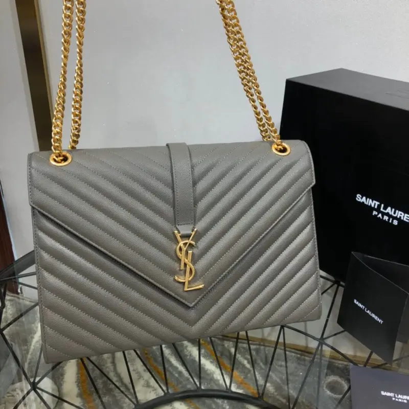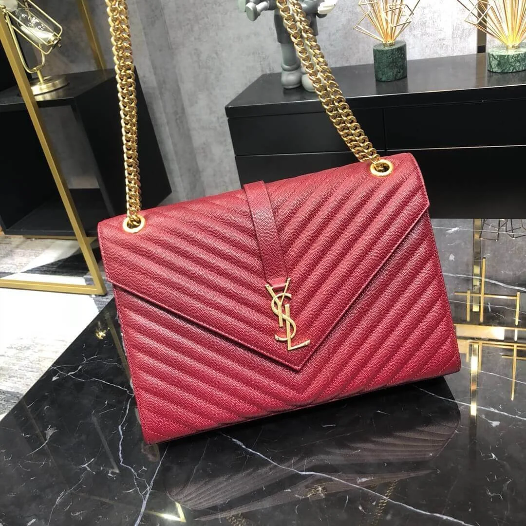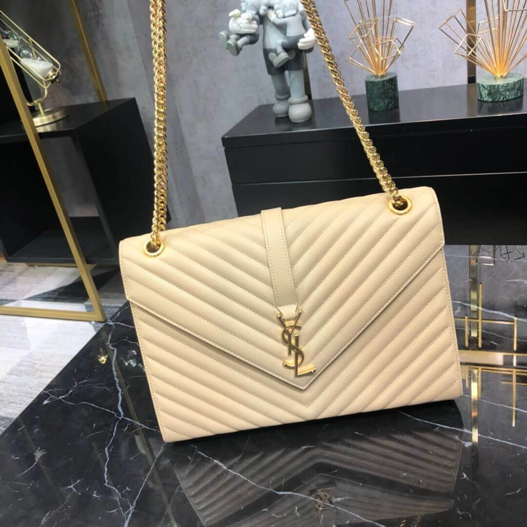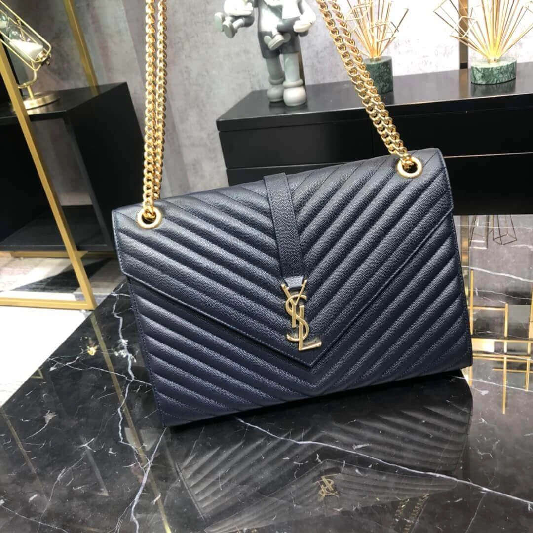 Quilted Grained Leather Large Envelope Shoulder Chain Bag 396910