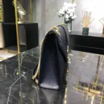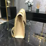 Discover a timeless accessory in this exquisitely crafted envelope-style shoulder bag. Made from premium grained calfskin leather, this piece features elegant matelassé stitching for a sophisticated quilted texture. The design is centered around a classic flap front, accentuated by a polished gold-toned metallic emblem that adds a touch of understated luxury.