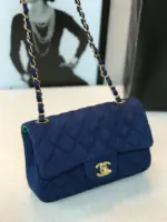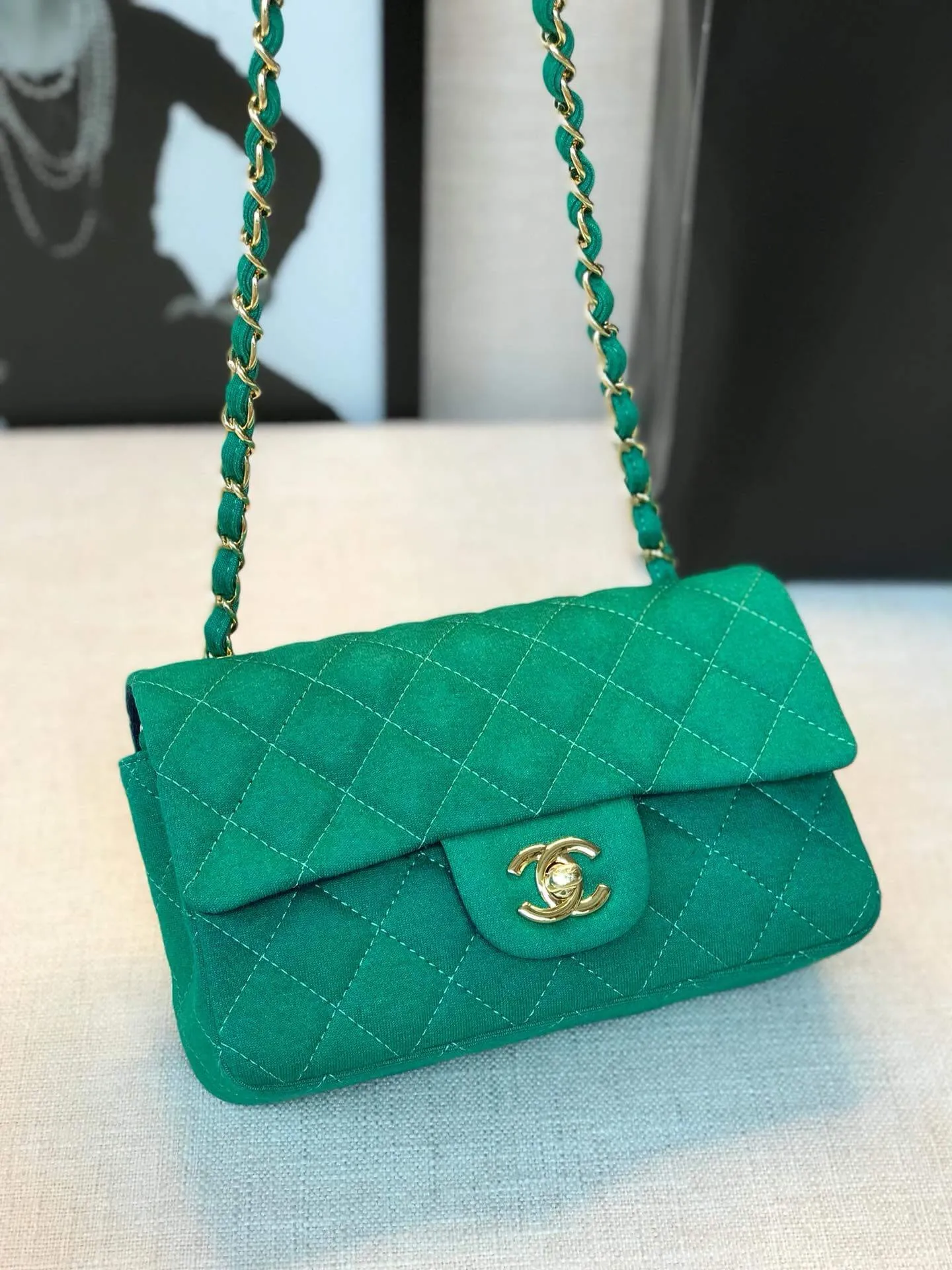 Discover timeless elegance with this exquisitely crafted shoulder bag. Constructed from a soft, high-quality jersey material, this piece showcases a sophisticated quilted texture that adds a layer of visual interest and luxury. The bag’s iconic silhouette is both structured and refined, making it an effortlessly chic accessory suitable for any occasion.