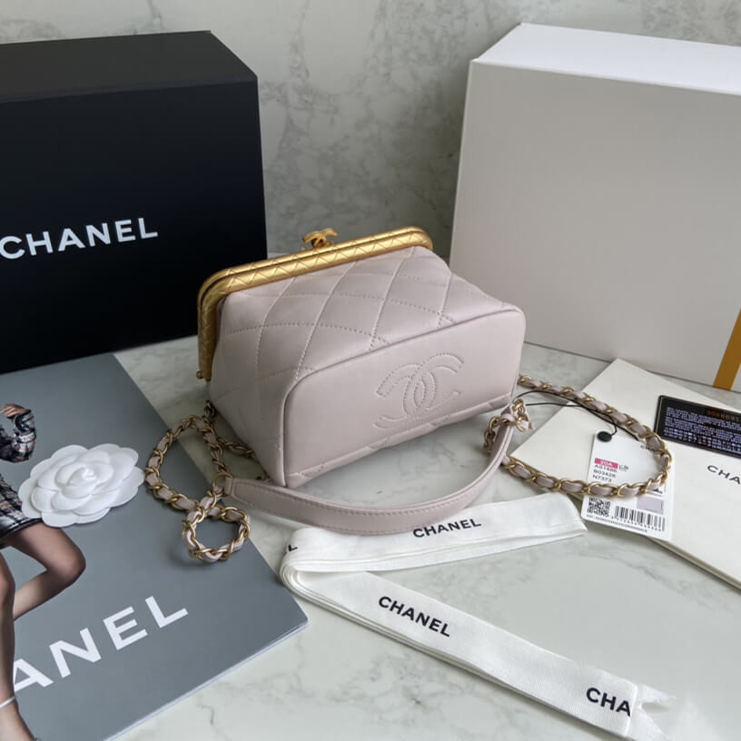 Quilted Lambskin Kiss-Lock Clasp Top Handle Bag AS1886