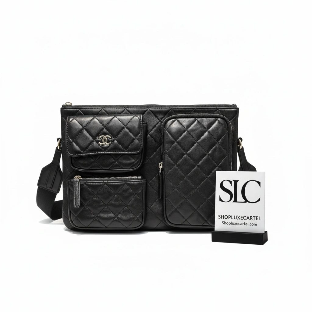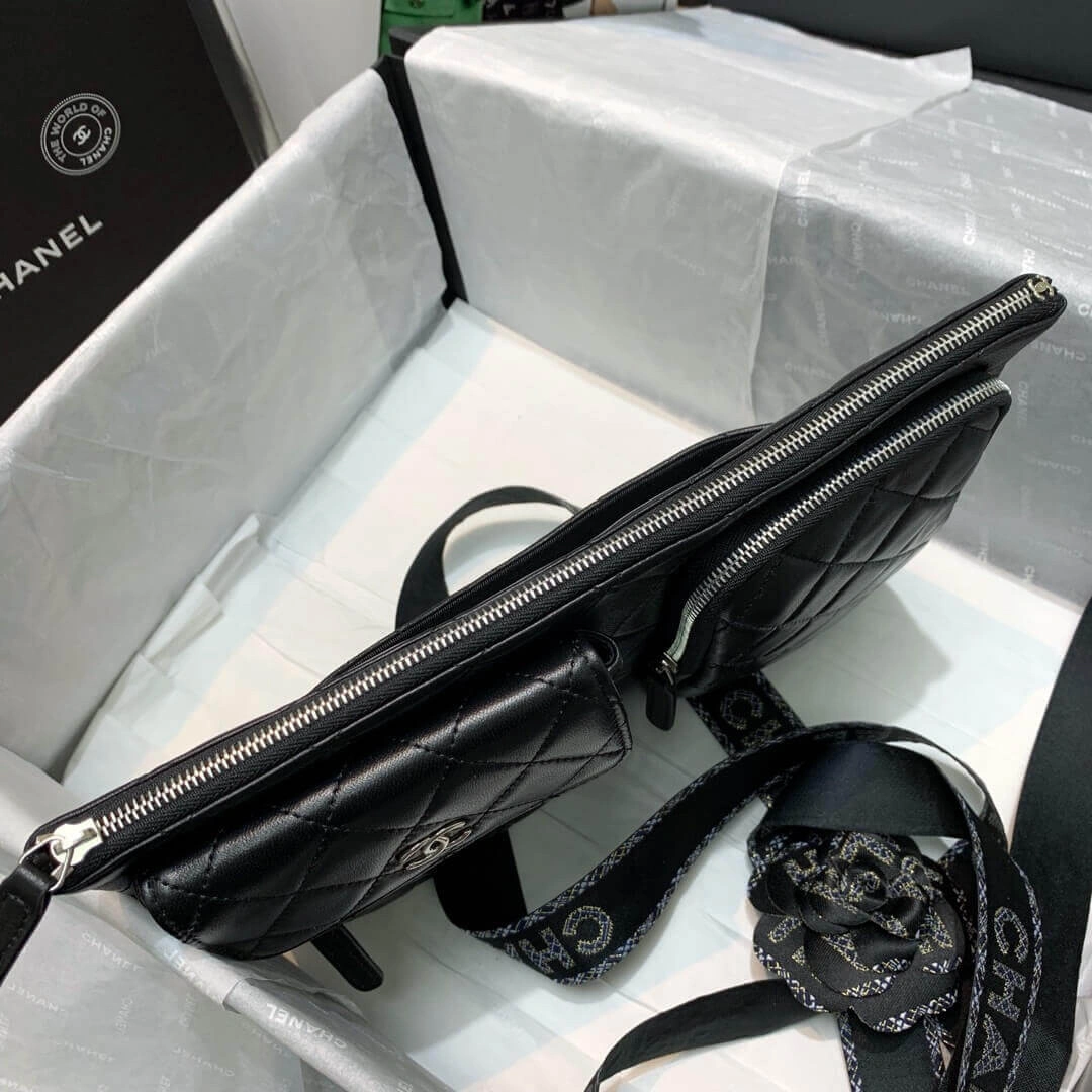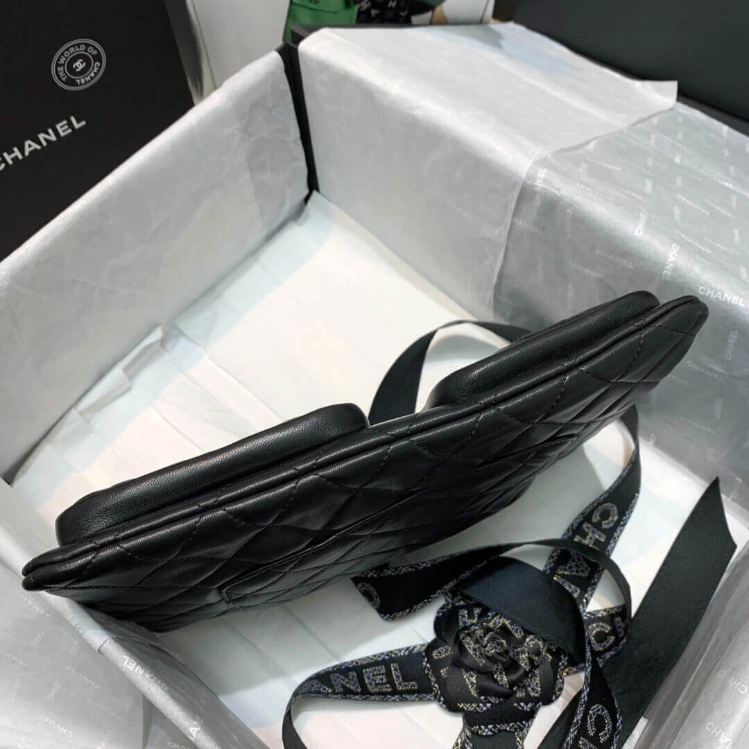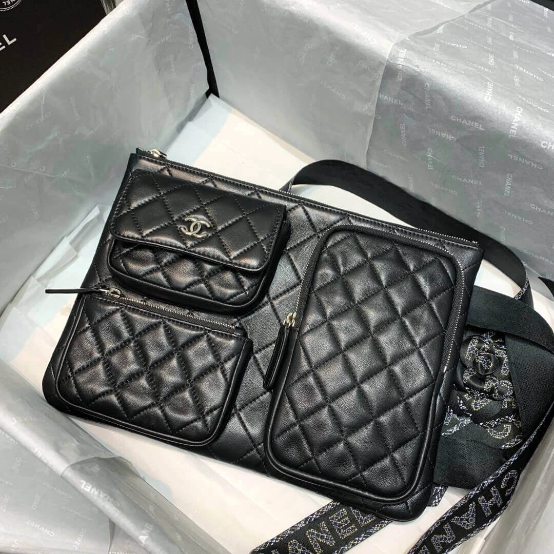 Quilted Lambskin Leather Pouch with Accessories Black AP1054