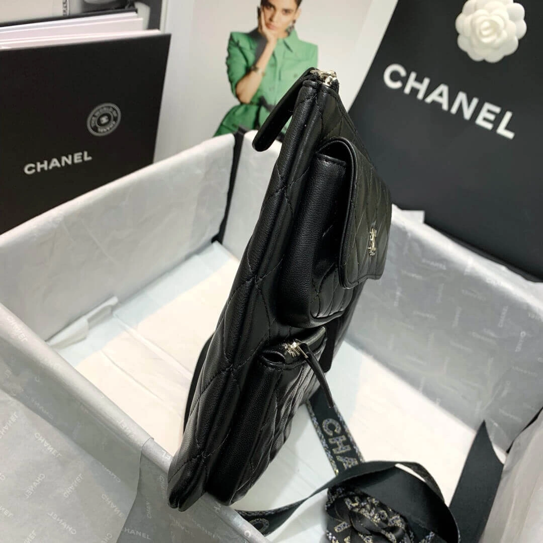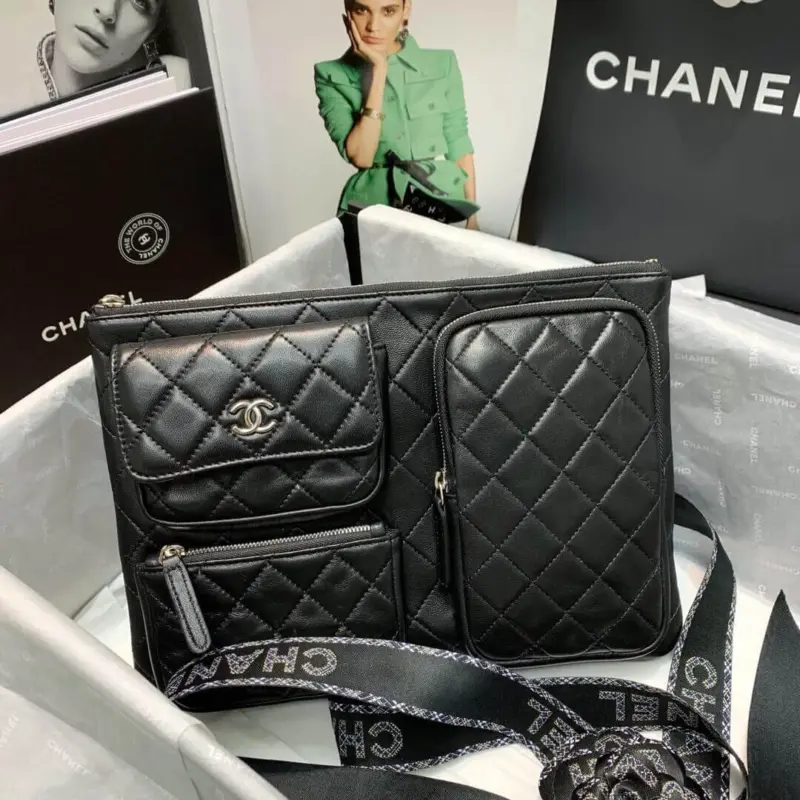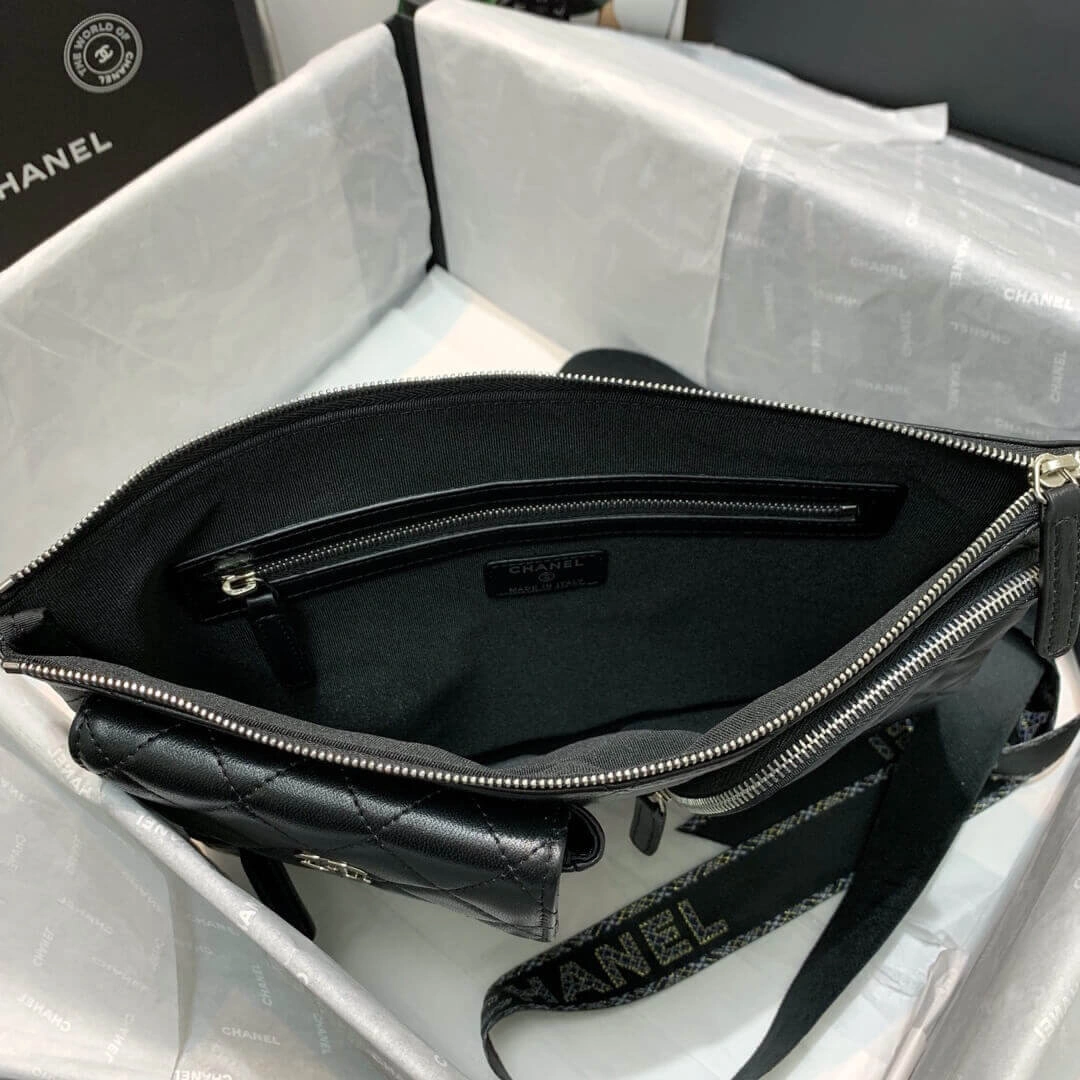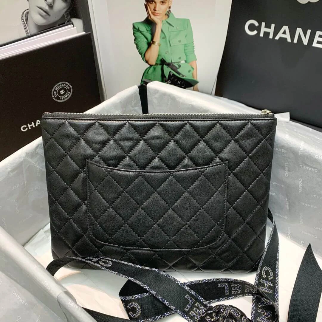 Quilted Lambskin Leather Pouch with Accessories Black AP1054