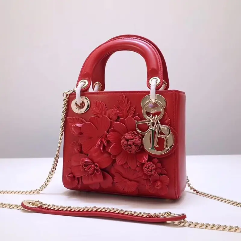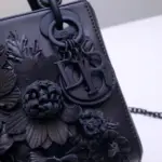 Experience timeless elegance with this beautifully crafted mini handbag. Made from supple lambskin, its exterior features a classic geometric quilted pattern, providing both plush texture and a sophisticated structure. The design is further elevated by intricate and colorful floral embroidery, adding a touch of romance and artisanal charm to its iconic silhouette.