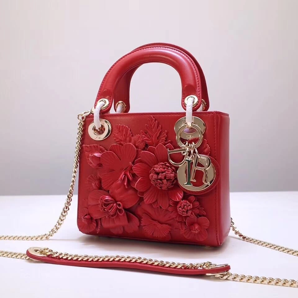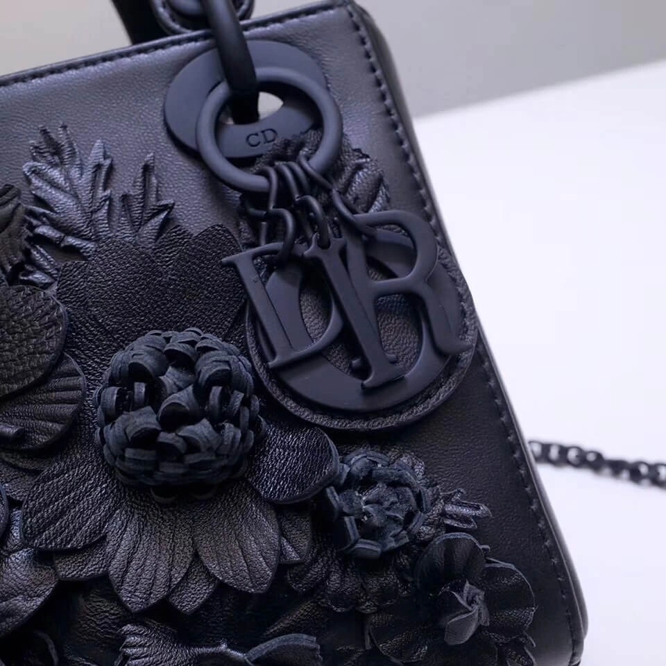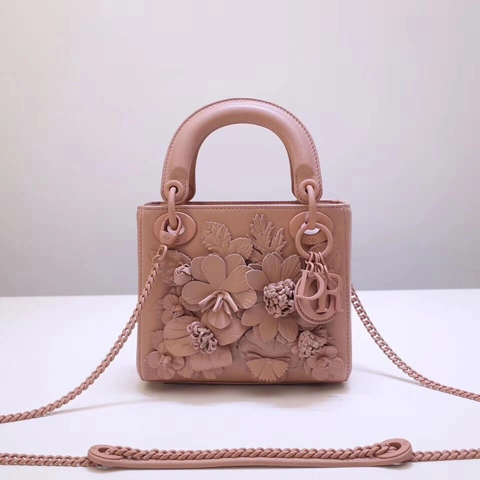 Quilted Lambskin Mini Bag with Floral Embroidery M0565