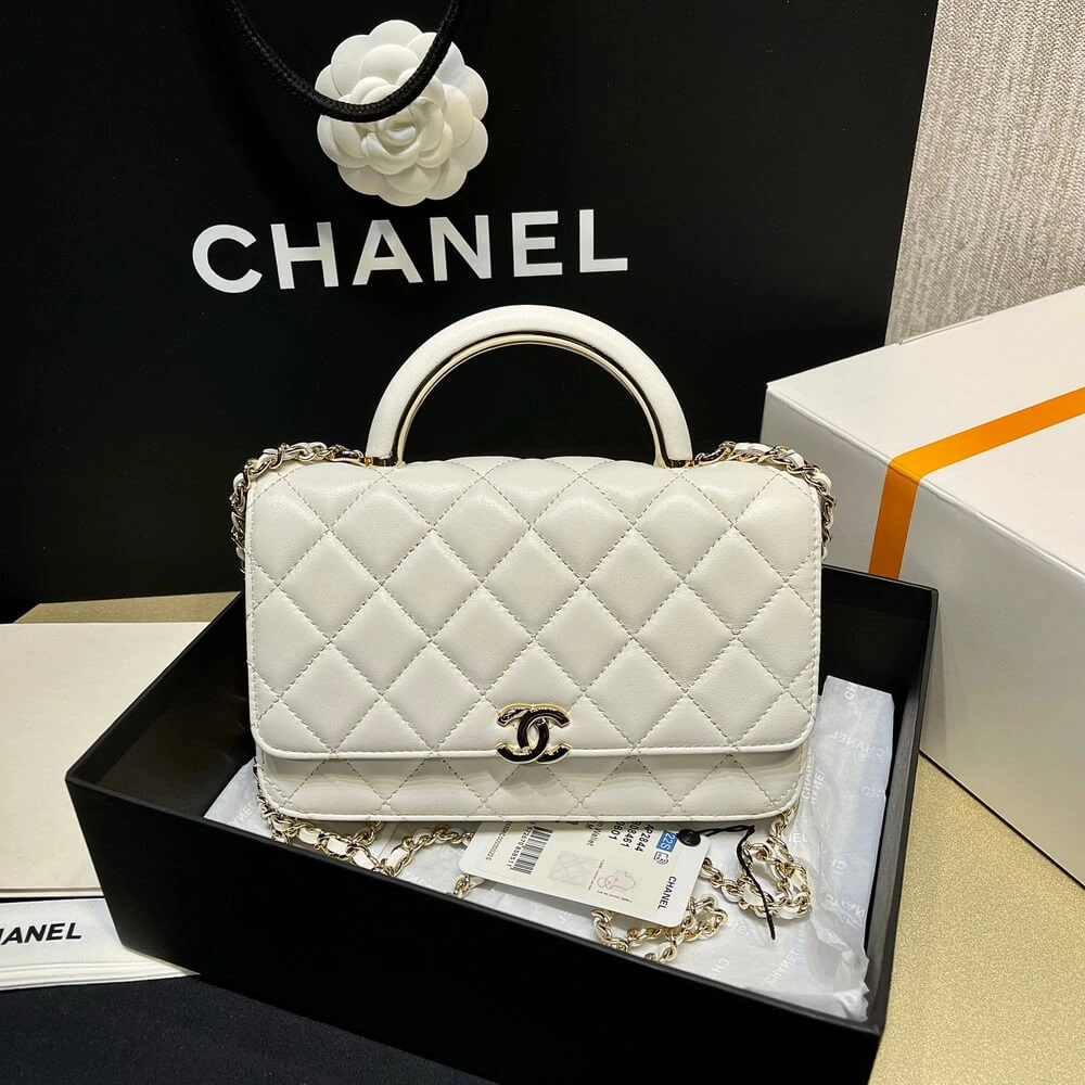 This elegant piece masterfully combines the convenience of a wallet on a chain with the timeless appeal of a top-handle bag. Its versatile design allows for multiple carrying options, from a chic handheld accessory to a classic crossbody staple, making it the perfect companion for any occasion. This bag offers a sophisticated blend of functionality and enduring style.