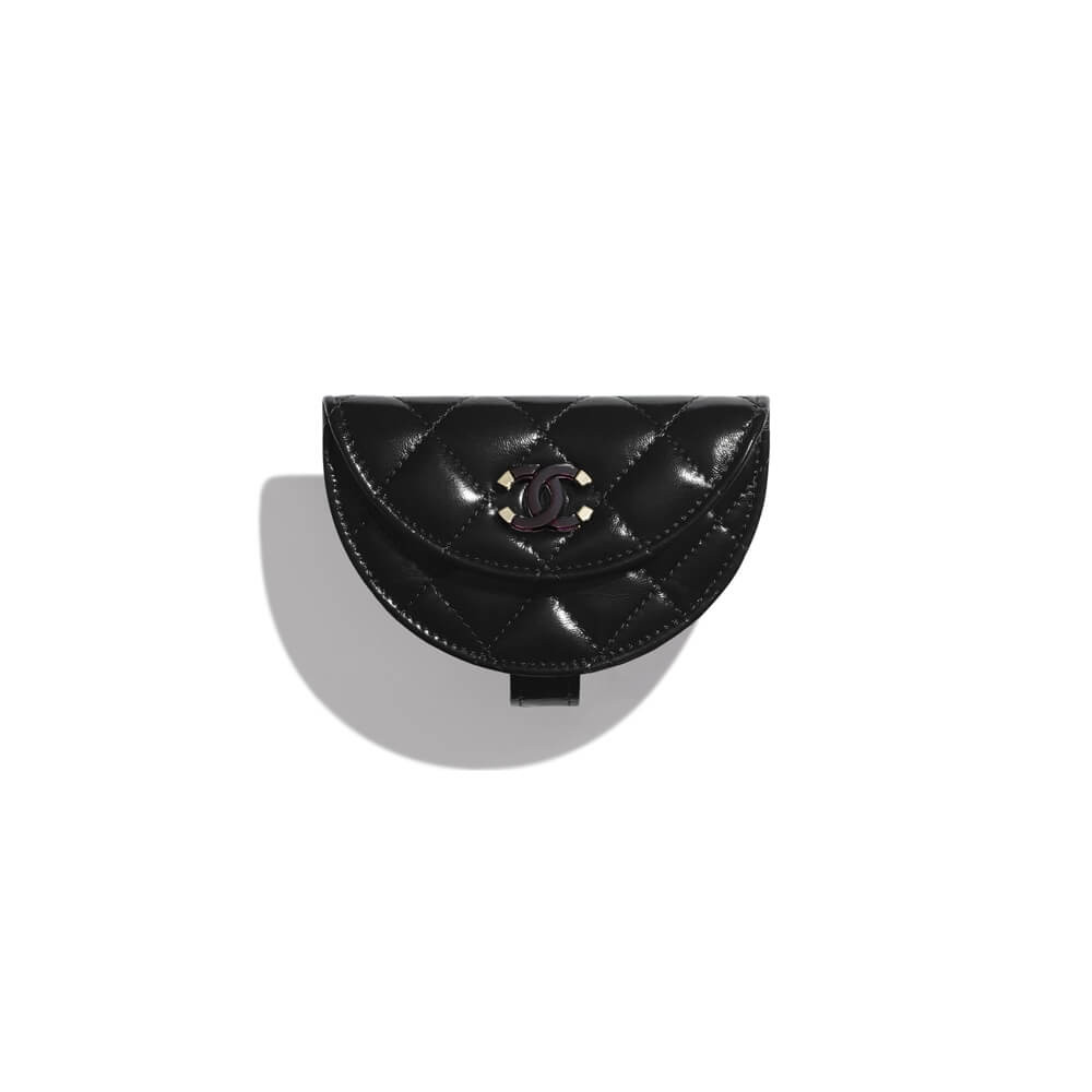 Discover the perfect blend of elegance and convenience with this beautifully crafted coin purse wristlet. Designed with a classic quilted finish, this compact accessory offers a sophisticated way to carry your essentials. The shimmering, crumpled lambskin leather provides a unique texture, while the polished gold-tone metal hardware and delicate chain wristlet add a touch of timeless style. It’s an ideal piece to be worn on your wrist as a chic alternative to a bracelet.