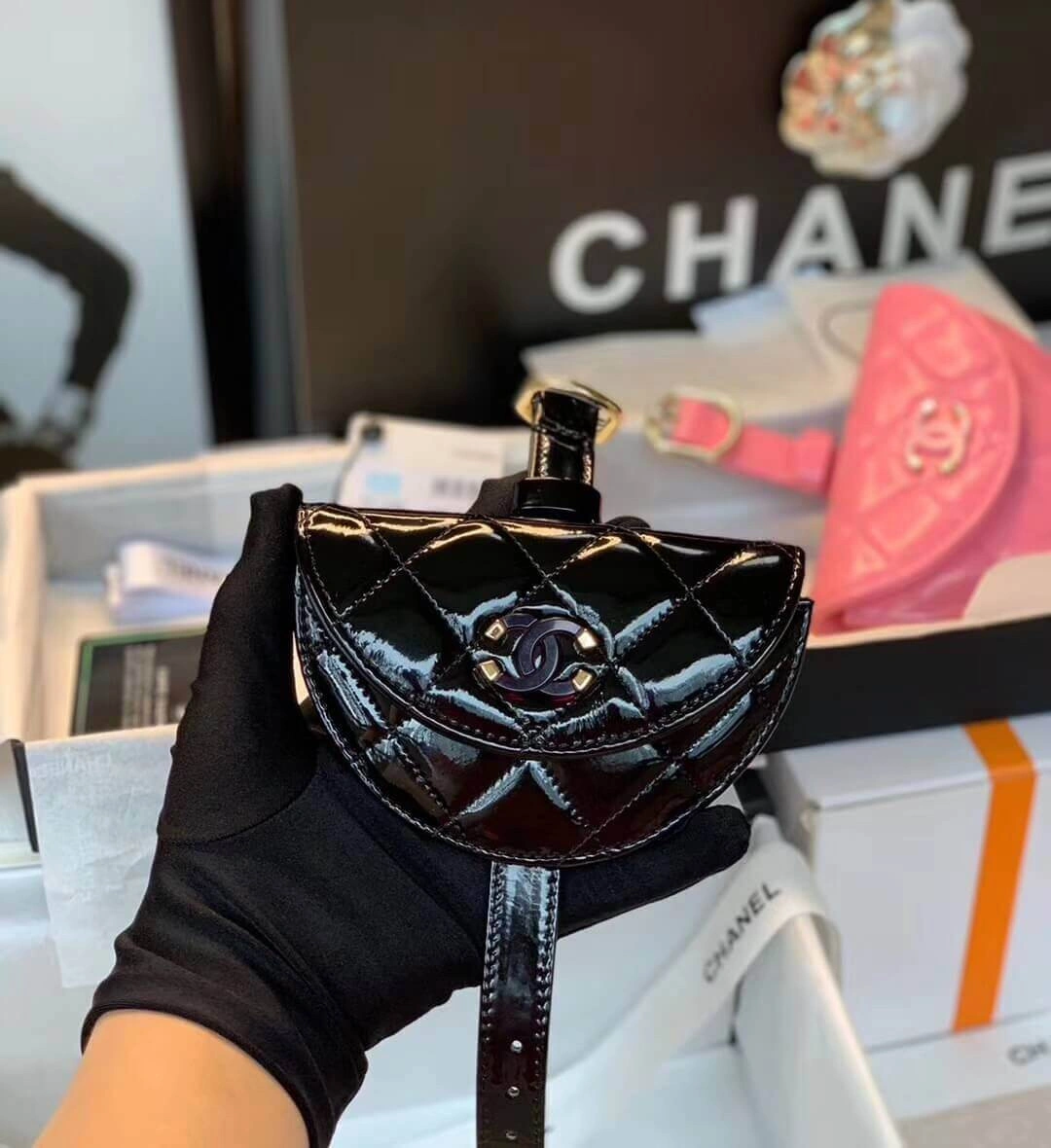 - Equipped with a chain for wristlet carrying