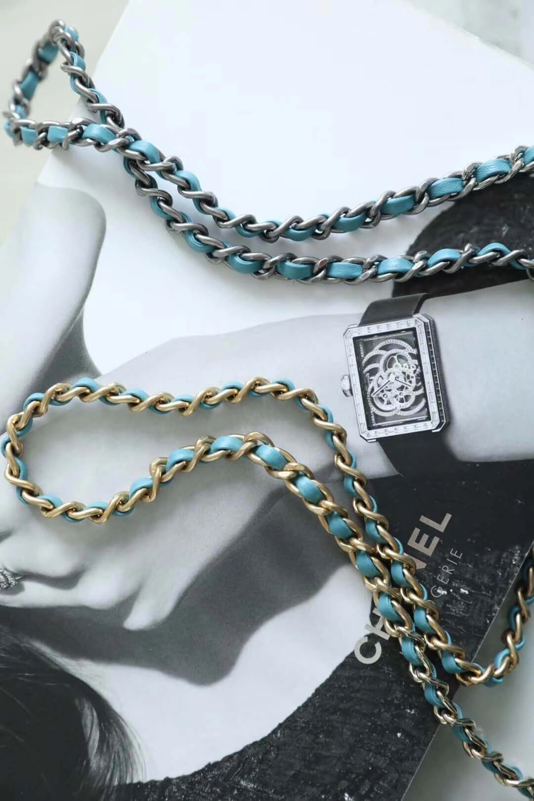 Perfectly proportioned for daily essentials, its structured base and soft, quilted body offer both durability and elegance. The interwoven chain and leather straps provide comfortable, adjustable wear, making it an effortlessly chic companion for any occasion.