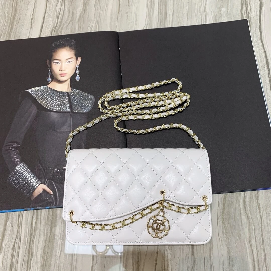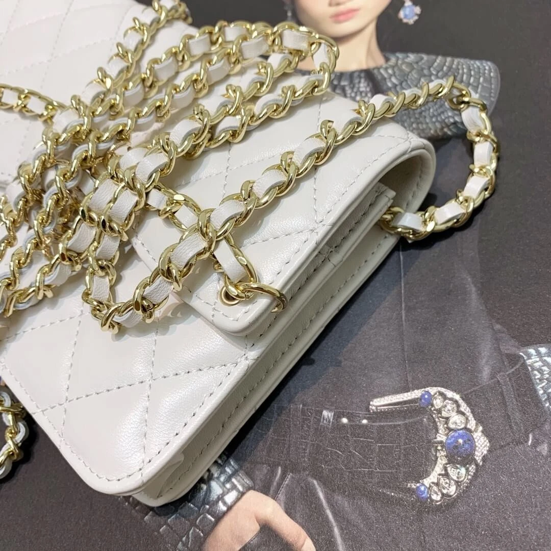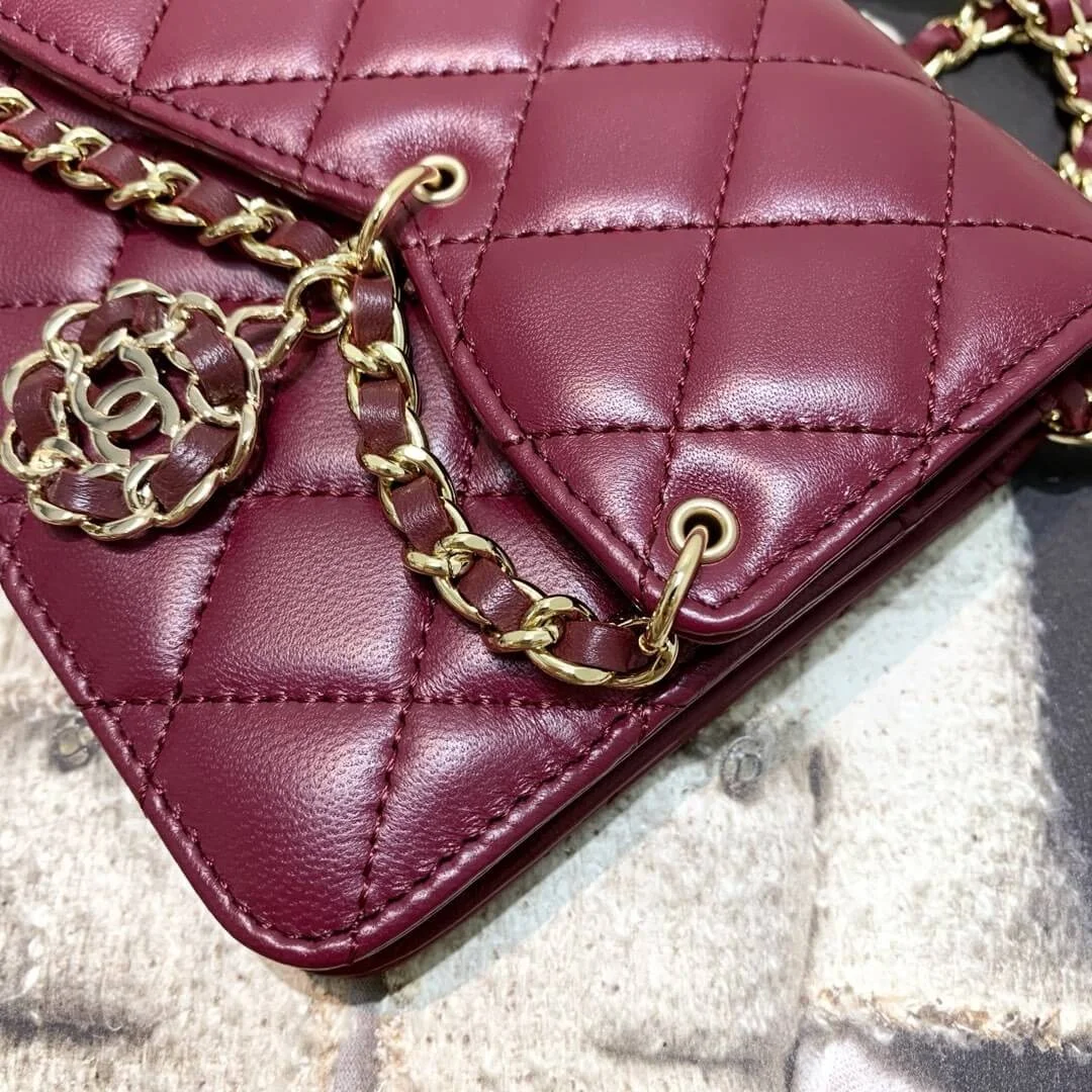 Experience timeless elegance with this versatile wallet on a chain, beautifully crafted for the modern wardrobe. Its classic quilted exterior and compact, structured silhouette make it a sophisticated accessory for any occasion, transitioning effortlessly from a daytime crossbody to an elegant evening clutch. The polished, gold-tone hardware adds a touch of refined luxury to its understated design.