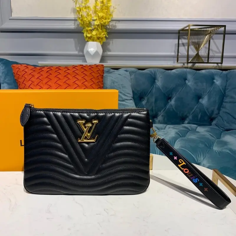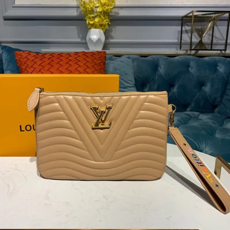 Crafted from exquisitely smooth calf leather, this zipped pochette features a distinctive wave-pattern quilting that brings a modern and sophisticated touch to its design. This supple pouch is a stylish and convenient way to carry your essentials, from cards to a smartphone, making it the perfect accessory for both day and evening use.