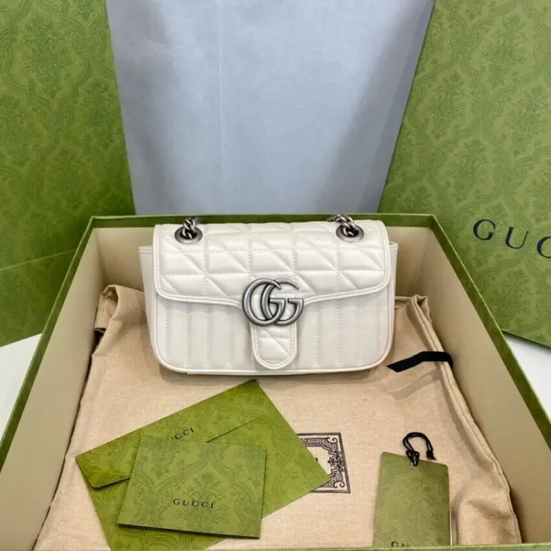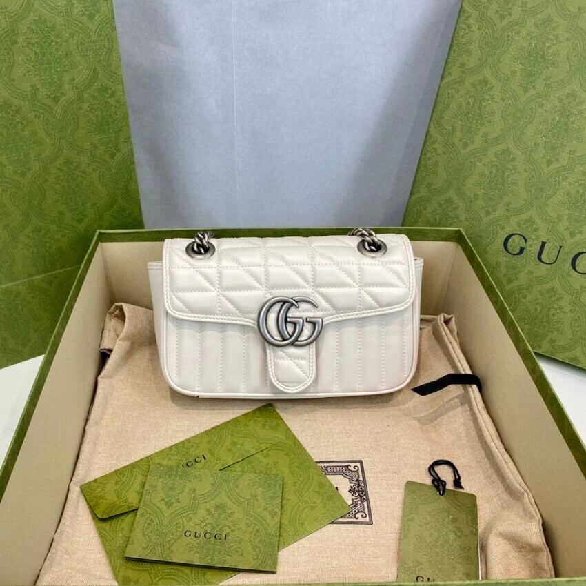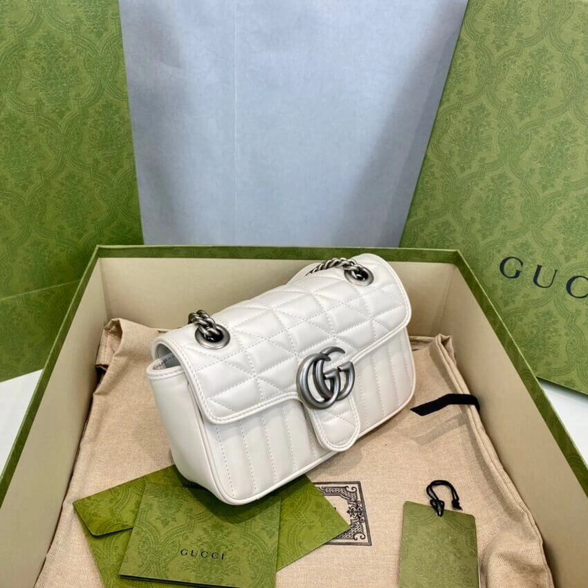 - Crafted from white matelassé leather