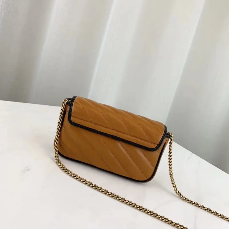 Discover a timeless accessory crafted from luxurious matelassé leather, distinguished by its sophisticated diagonal quilting and a subtle vintage effect. This super mini bag offers a compact yet elegant solution for carrying your essentials, easily transitioning from a shoulder bag to a crossbody with its detachable chain strap.