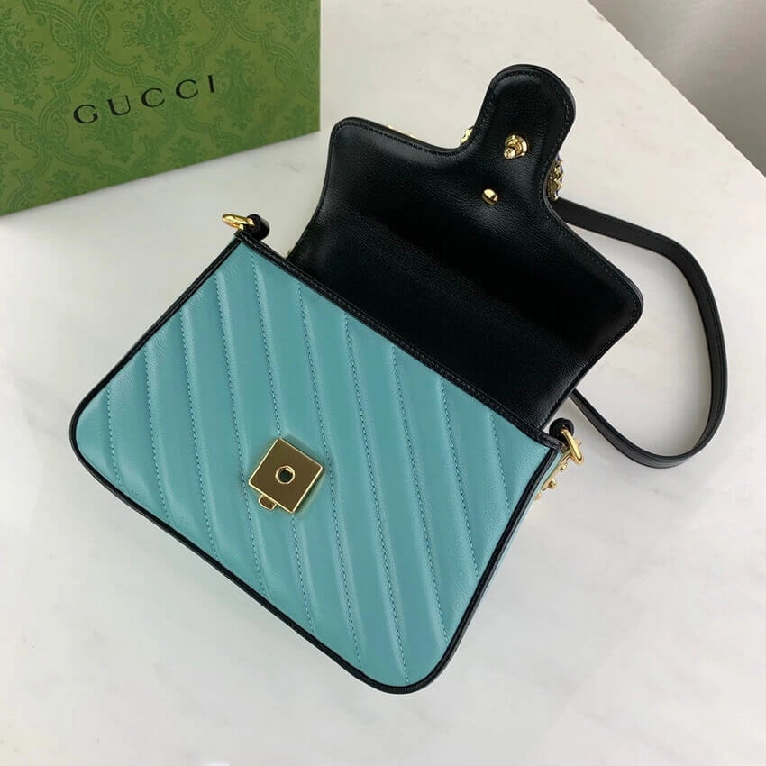 Quilted Matelassé Mini Shoulder Bag in Pastel Blue Leather 583571