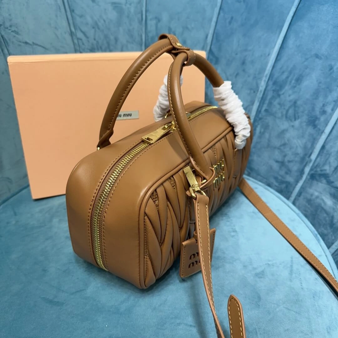 Quilted Matelasse Nappa Leather Top Handle Bag 5BB148 Caramel