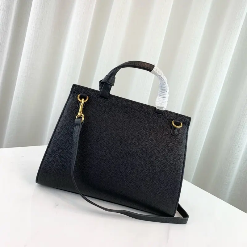 Designed for modern functionality, the bag features sturdy double handles and a detachable shoulder strap, allowing for multiple carrying styles. The interior is lined with a durable cotton-linen blend and thoughtfully organized with a main compartment, a zip pocket, and a dedicated smartphone pocket. The flap closure, secured with a pin and side release, is adorned with antique gold-toned hardware for a timeless finish.