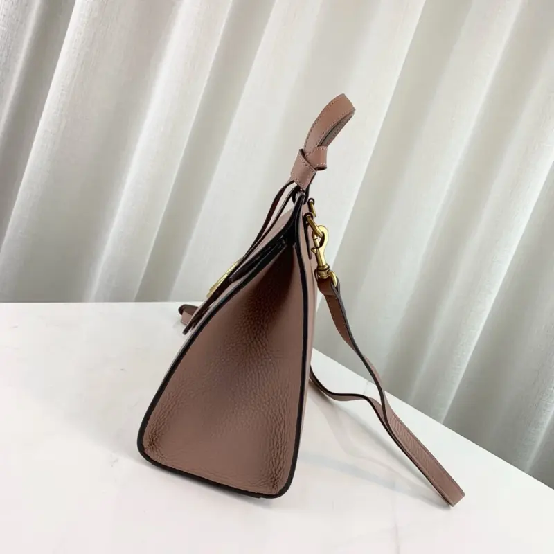This beautifully structured top handle bag is crafted from a signature lightweight and grainy leather, celebrated for its exceptional softness and elasticity. The exterior is detailed with elegant top-stitching, creating a sophisticated quilted effect that enhances its classic silhouette. This piece is a versatile accessory, perfectly sized for carrying daily essentials with a refined touch.