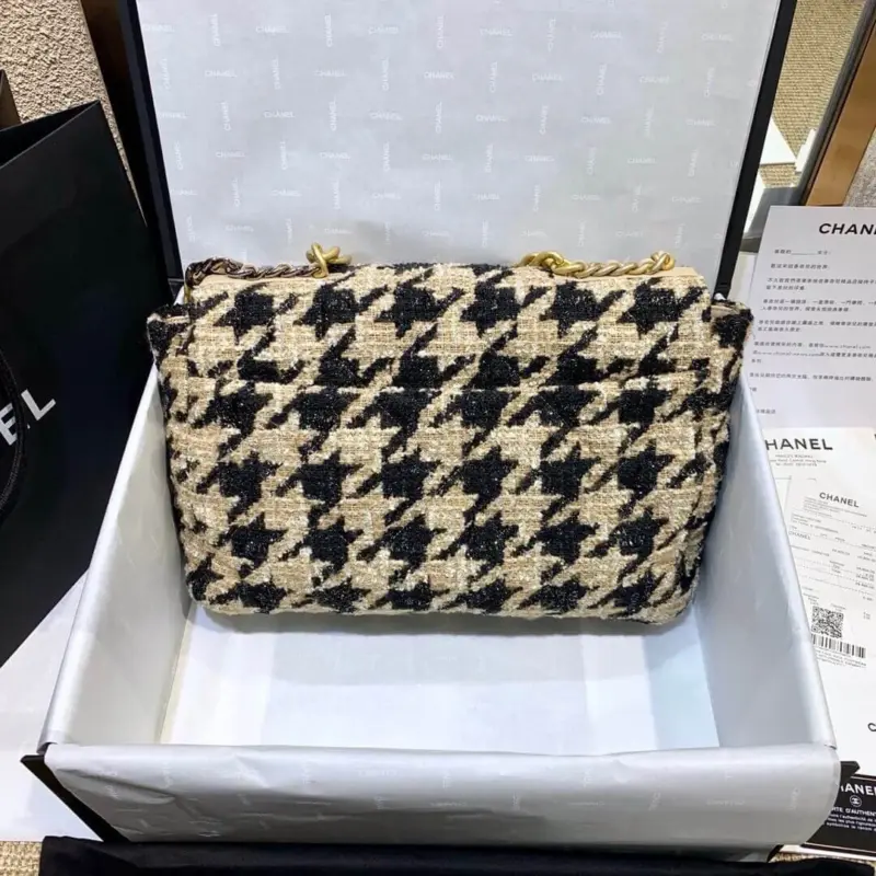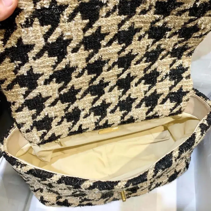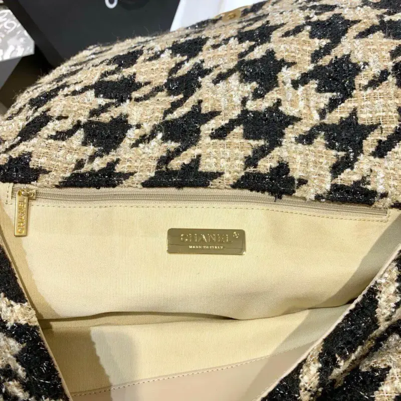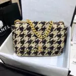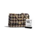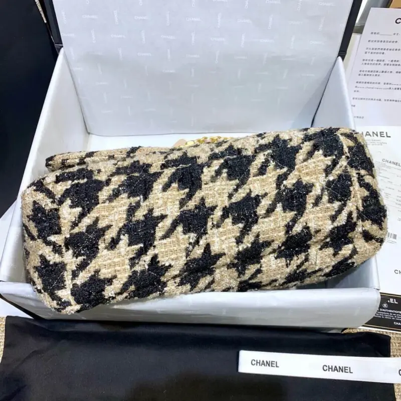 This beautifully crafted shoulder bag offers a touch of timeless sophistication for any occasion. Its spacious maxi design is defined by delicate, subtle quilting on a soft tweed exterior, creating an elegant and textured look. The bag’s most distinctive feature is its mixed-metal chain, combining gold-tone, silver-tone, and ruthenium-finish hardware for a truly unique and versatile accessory.