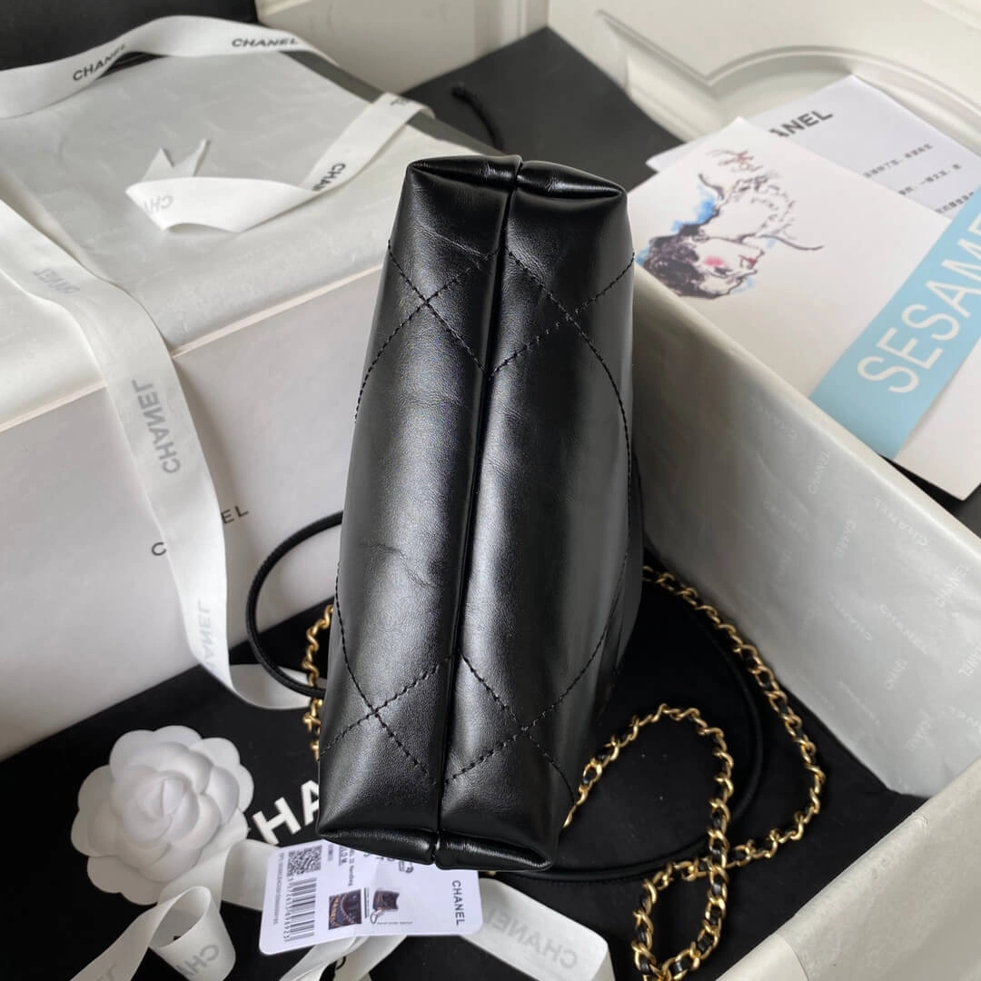 Quilted Mini 22 Shiny Calfskin Gold Metal Handbag Black AS3980