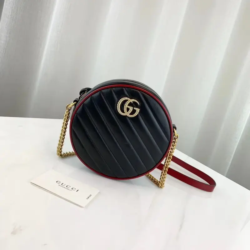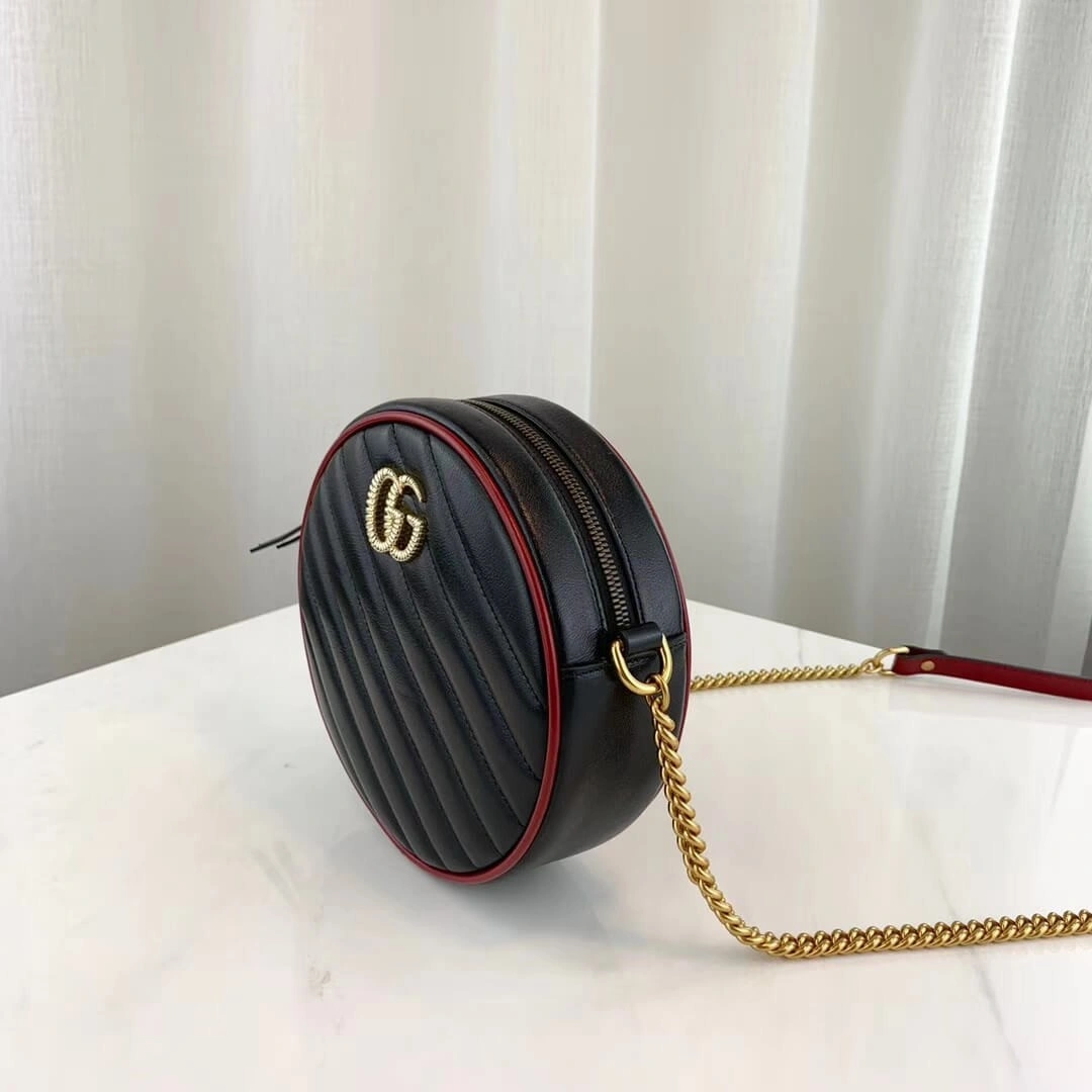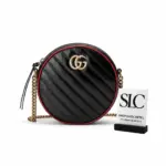 Quilted Mini Round Camera Crossbody Bag in Black 550154