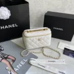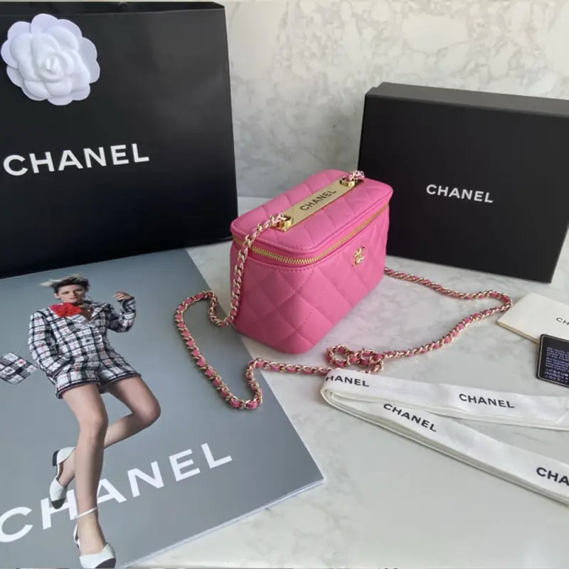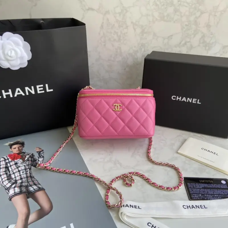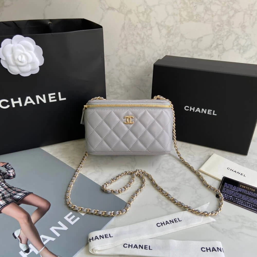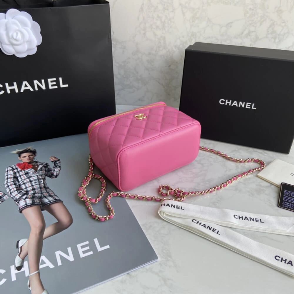 Discover timeless elegance with this beautifully structured mini vanity case. Expertly crafted from exquisitely soft lambskin, this compact bag features a sophisticated diamond-quilted finish that adds a touch of classic luxury to any outfit. The polished gold-tone hardware provides a refined contrast, creating a look of effortless grace.