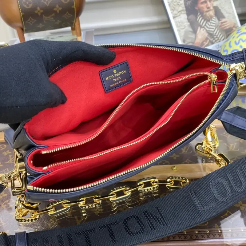 Designed for a dynamic lifestyle, this handbag features multiple carrying options. A removable, chunky gold-tone chain allows for a glamorous shoulder carry, while a wide, adjustable textile strap provides a comfortable crossbody or shoulder option. The well-organized interior, secured by a zip closure, ensures your essentials are always within reach.