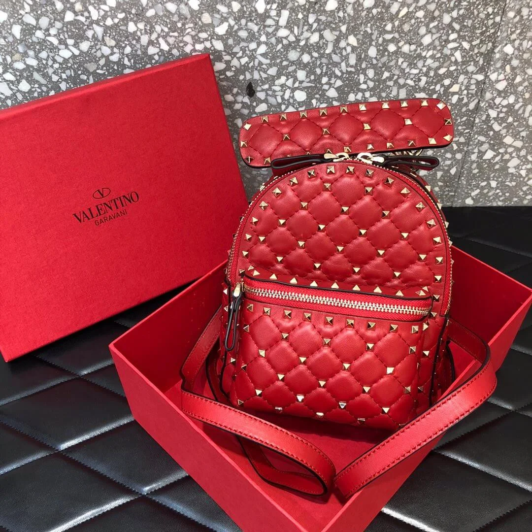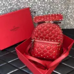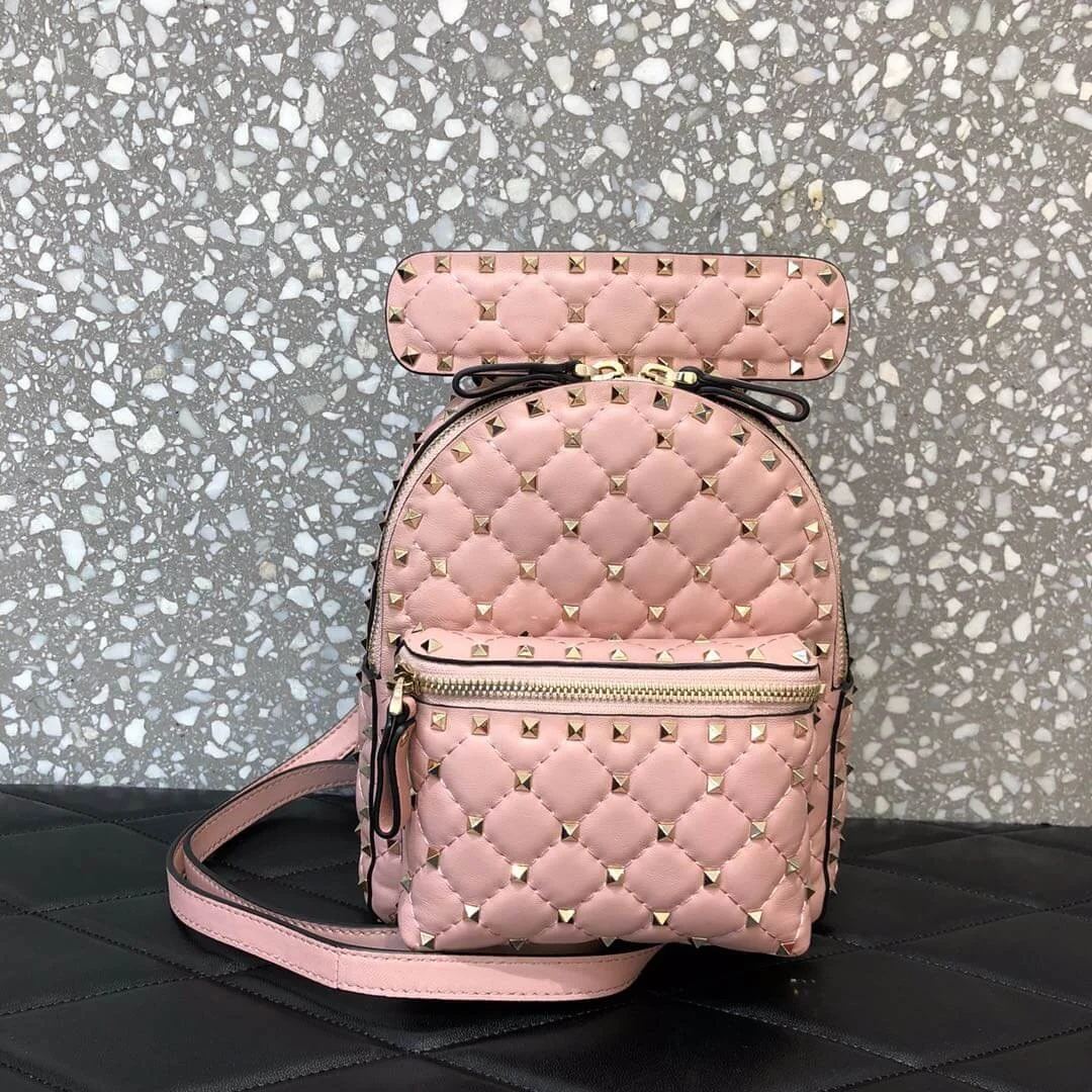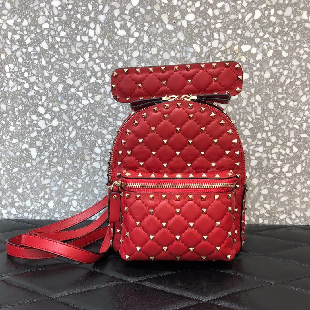 Quilted Rockstud Spike Mini Leather Backpack Bag 0630J