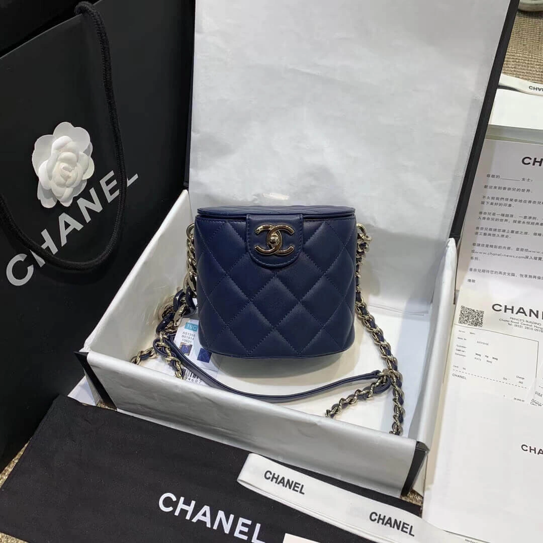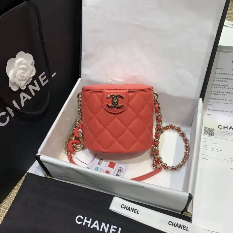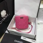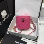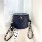 Quilted Round Cosmetic Vanity Case with Chain Strap AS1355