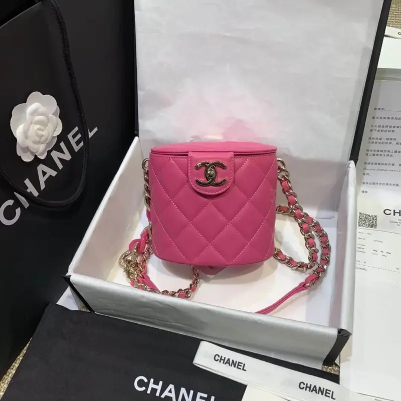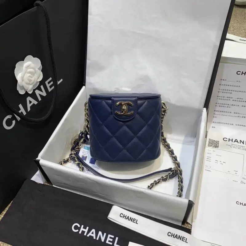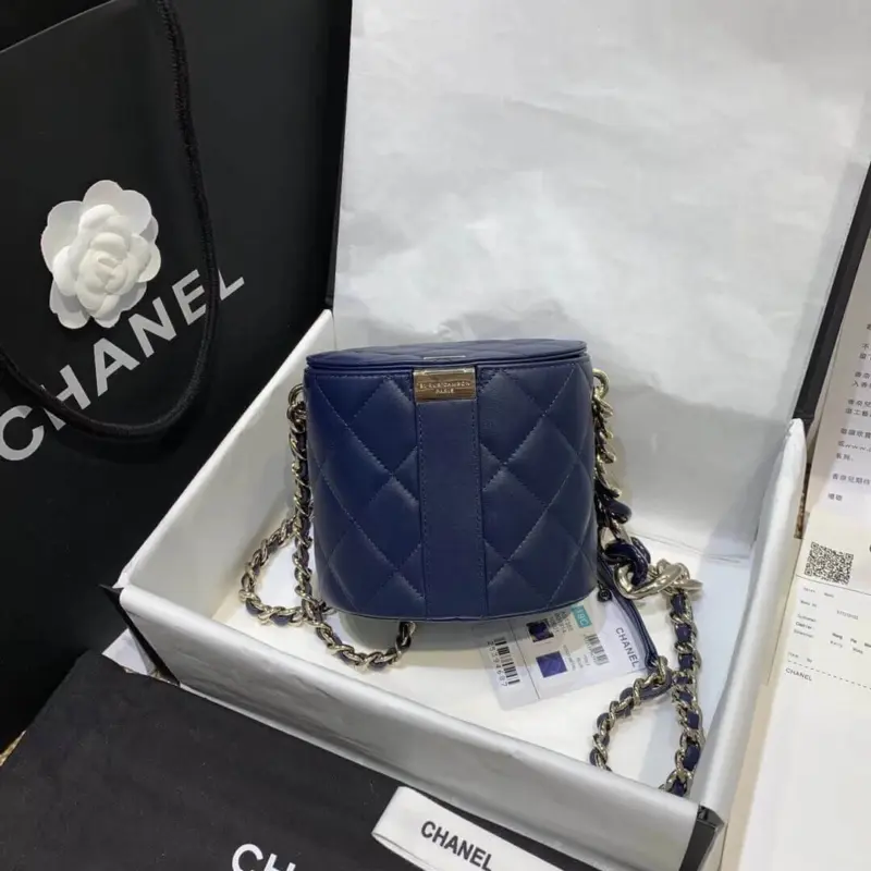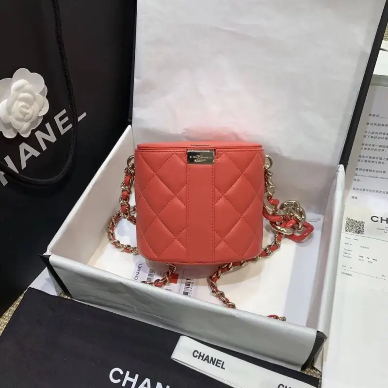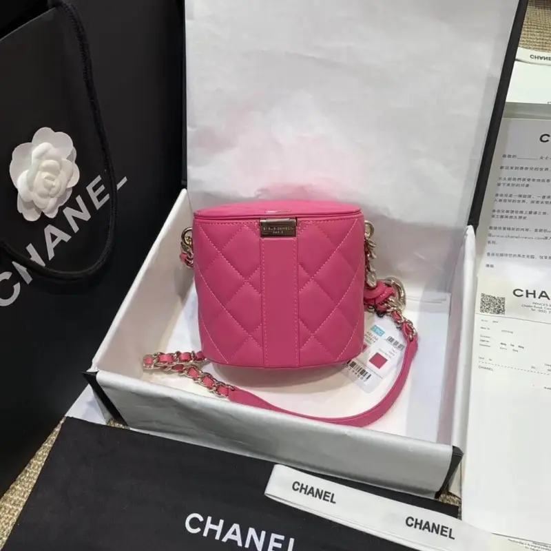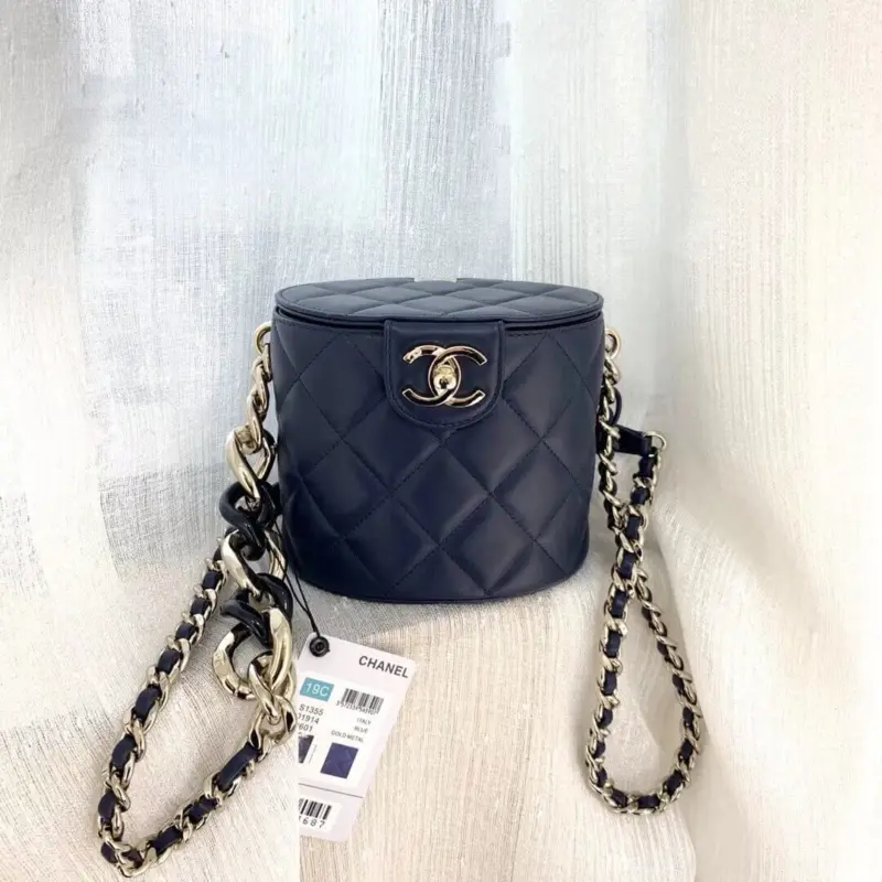 Experience timeless sophistication with this exquisitely designed round cosmetic case. Featuring a classic quilted pattern, this piece is crafted from supple lambskin leather for a truly luxurious feel. Its unique circular shape makes it a standout accessory, perfect for storing essentials or elevating your everyday style.