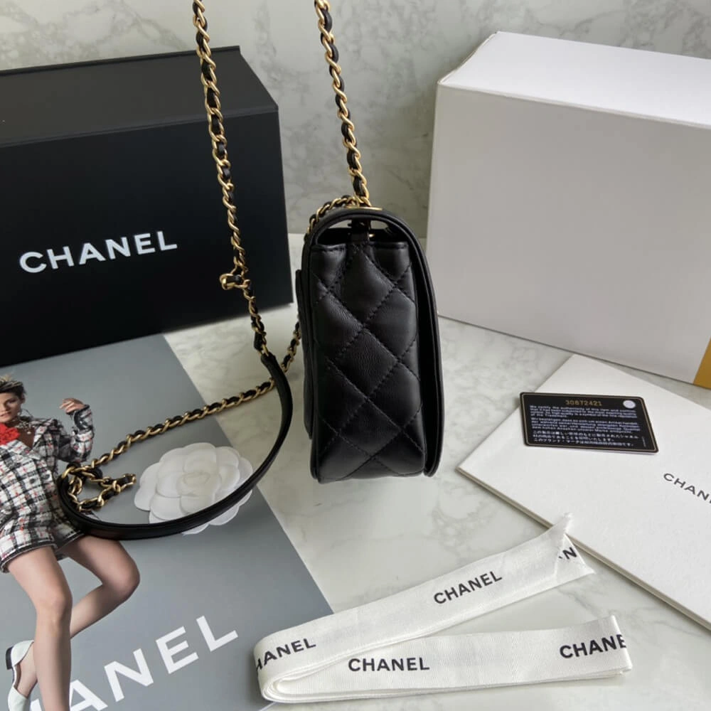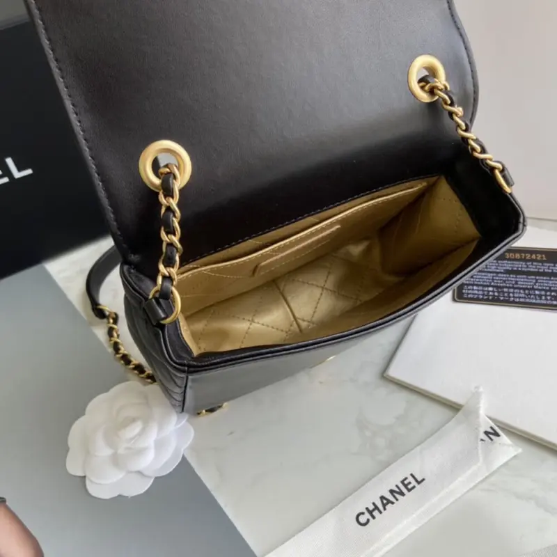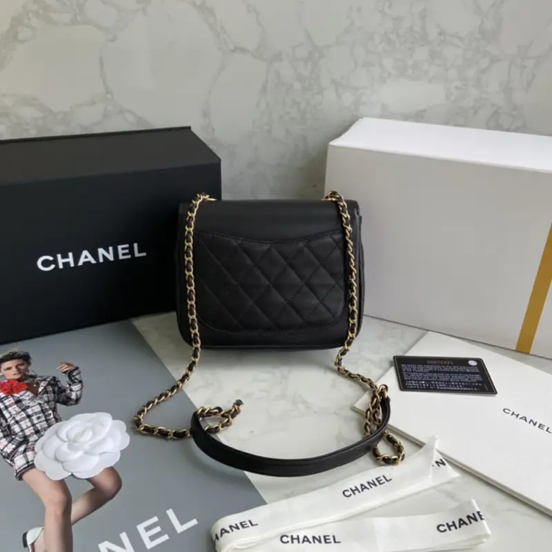 Designed for both style and function, this bag is equipped with a chic chain strap that sits comfortably on the shoulder. The secure front flap ensures your essentials are stored safely, while the compact size makes it an ideal choice for carrying just what you need without added bulk.