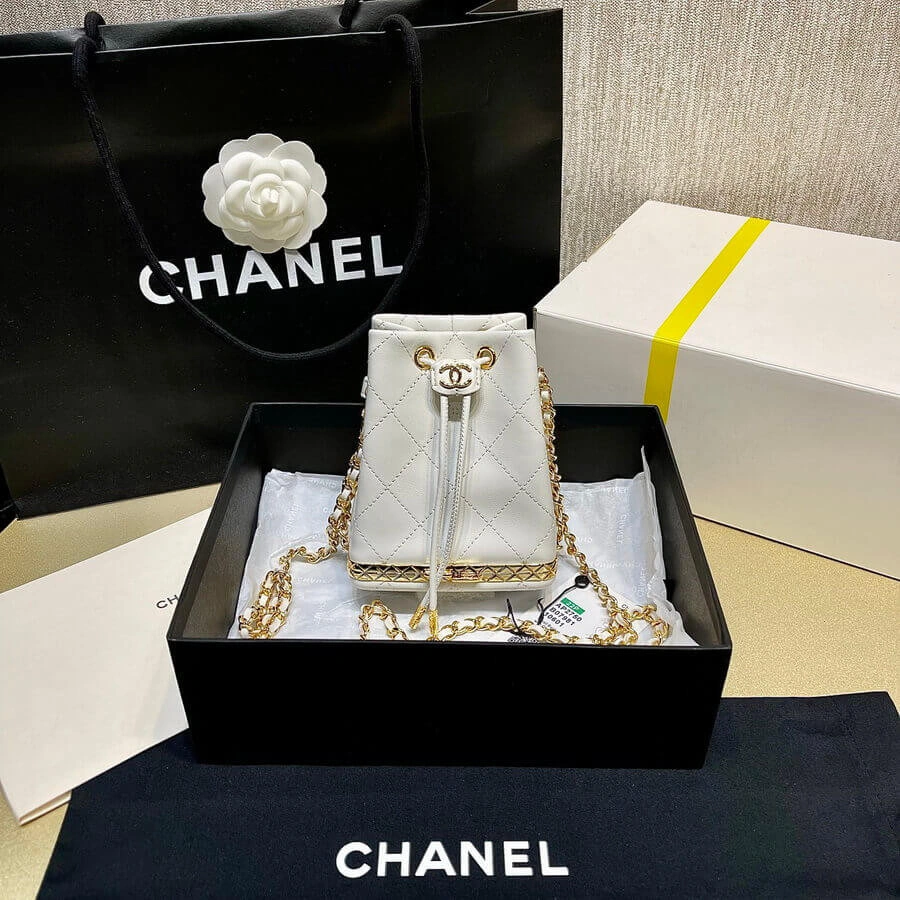 Quilted Small Bucket Bag with Chain Strap in Lambskin AP2750