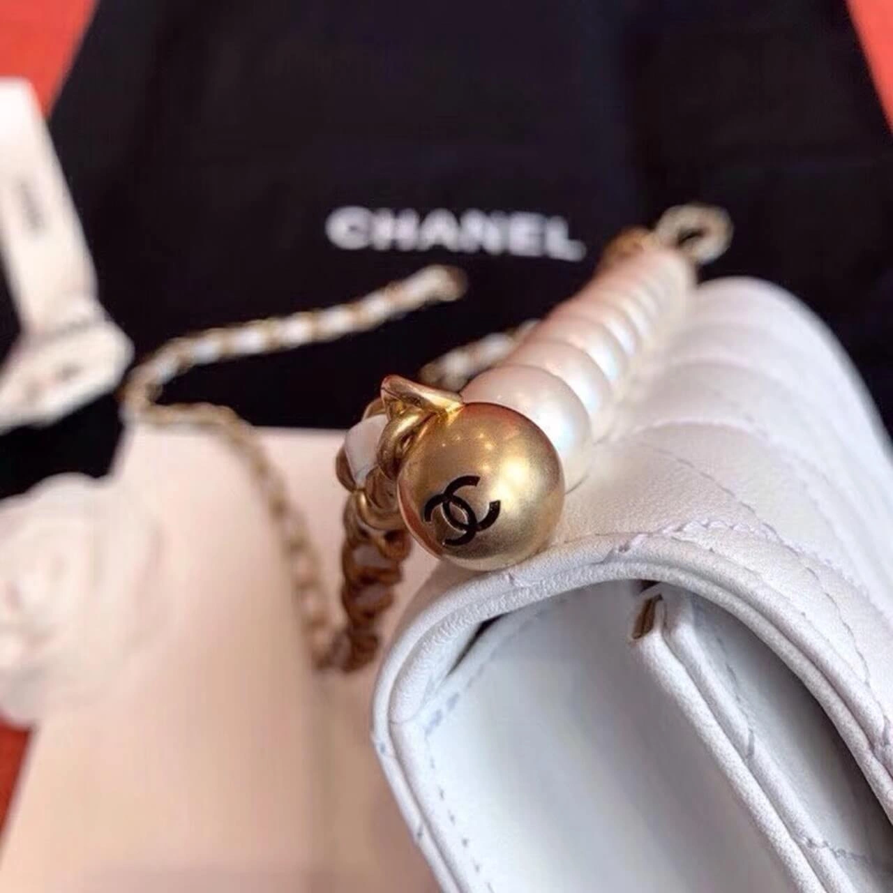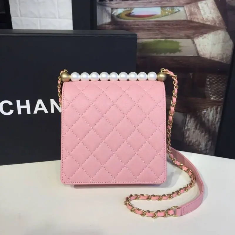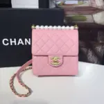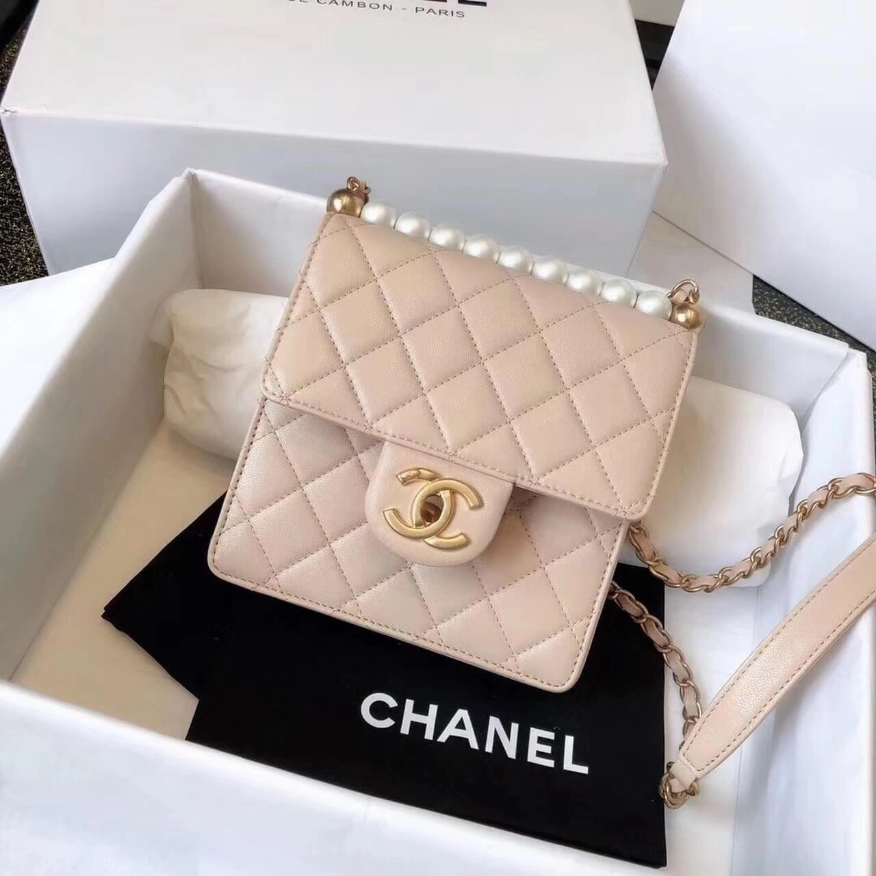 Quilted Small Flap Bag with Pearl Chain Strap AS0584