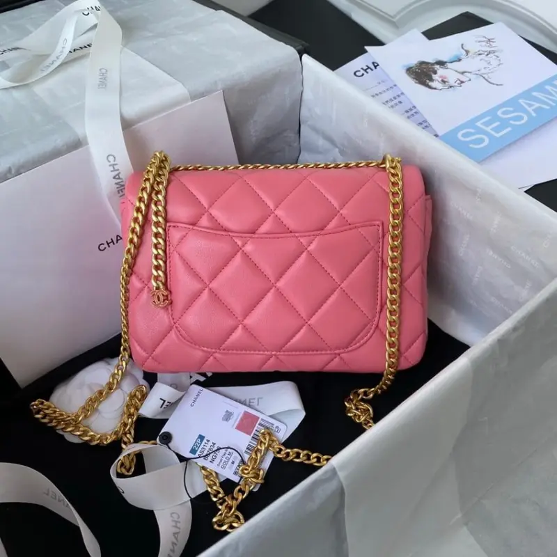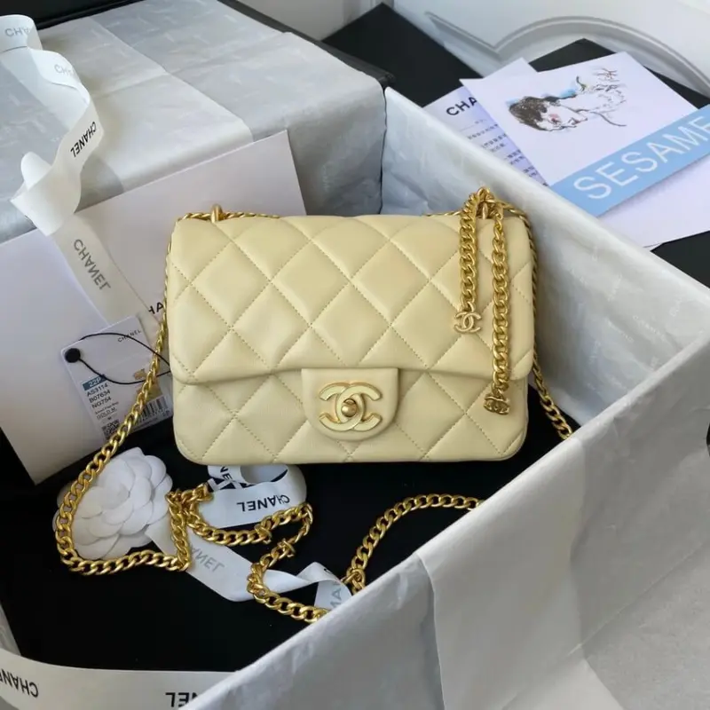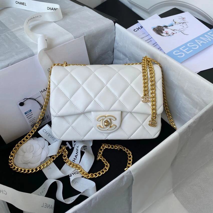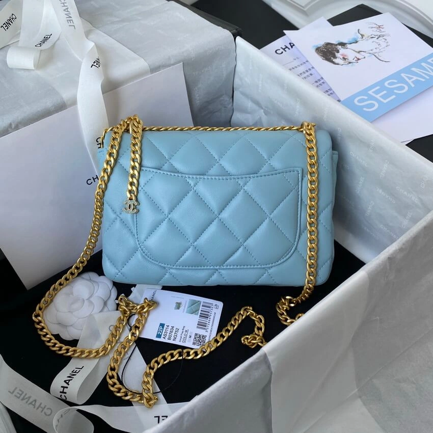 Quilted Small Flap Shoulder Bag in Lambskin with Enamel AS3114