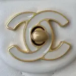 This compact bag is designed to hold your essentials securely within its structured interior. The front flap is adorned with a beautiful enamel and gold-tone metal embellishment that serves as a focal point and a secure closure. Carry it comfortably on the shoulder for a look of effortless chic.