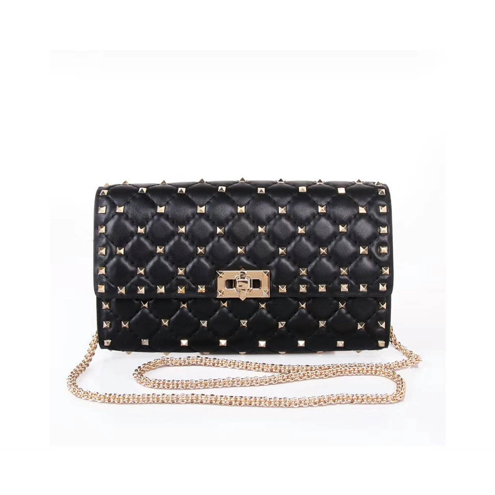 Quilted Studded Spike Crossbody Bag with Chain Strap 0137
