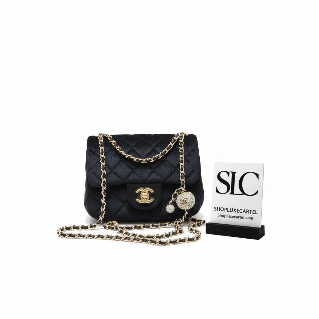 Quilted Velvet Mini Flap Bag with Strass Charm Strap AS1786