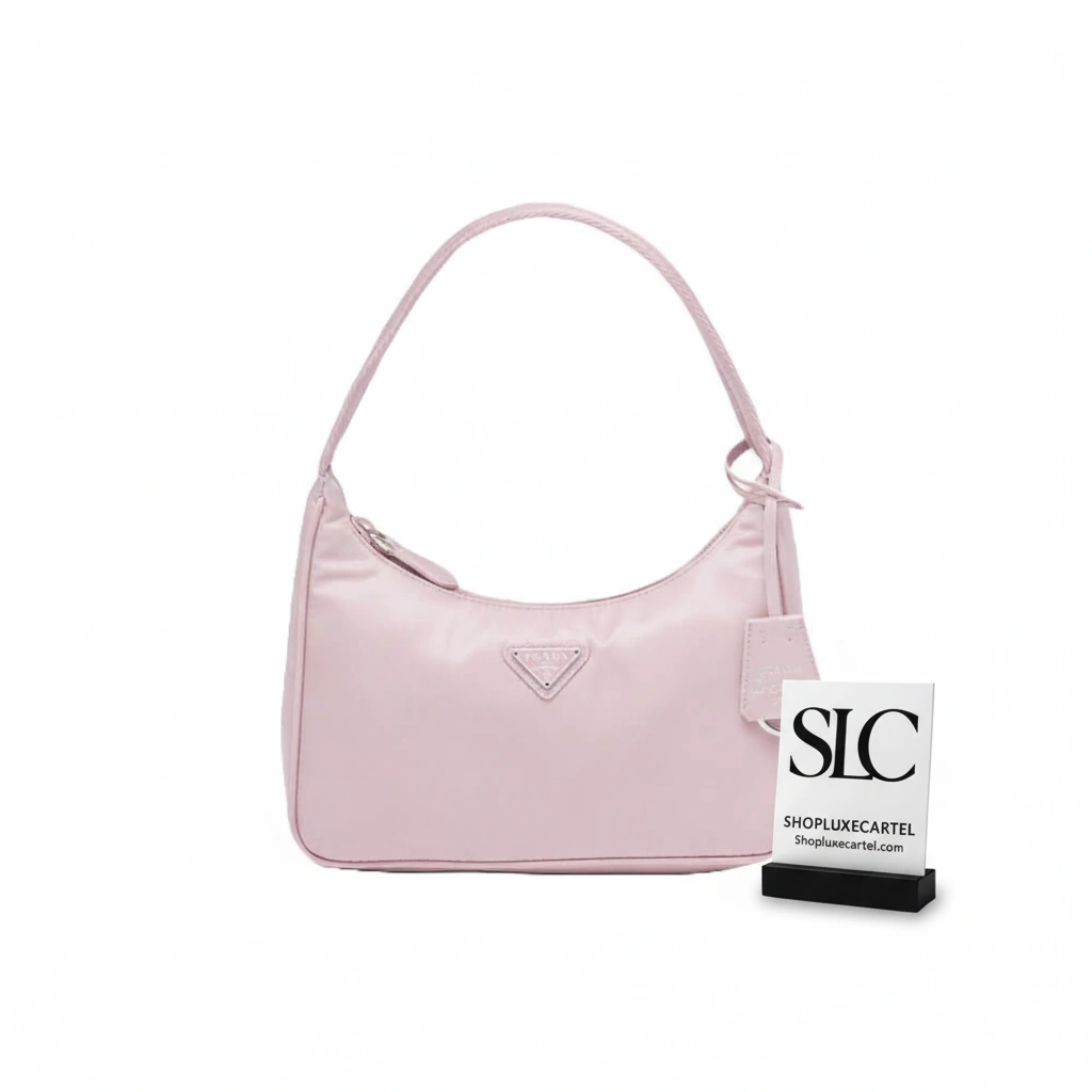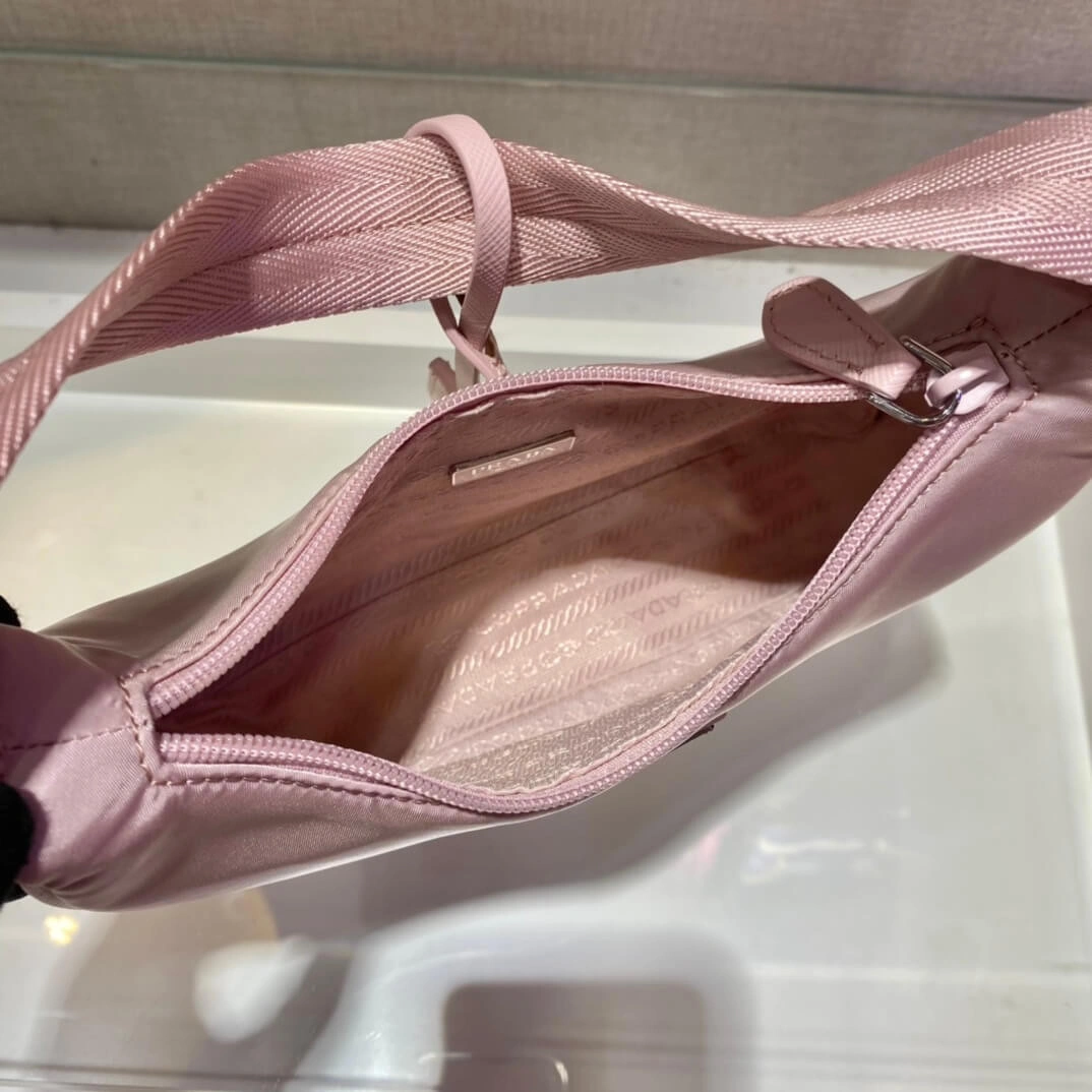 Re-Edition 2000 Nylon Shoulder Hobo Bag Alabaster Pink 1NE515