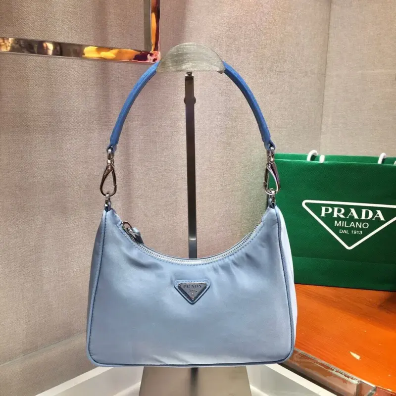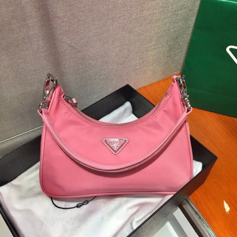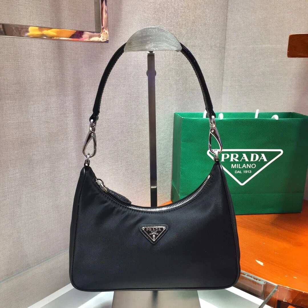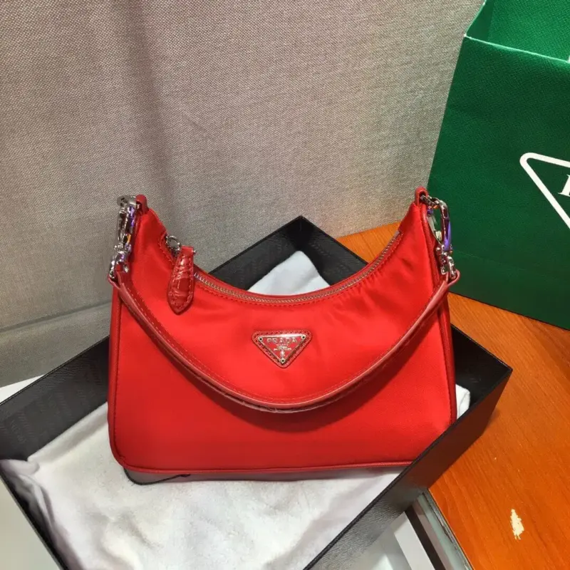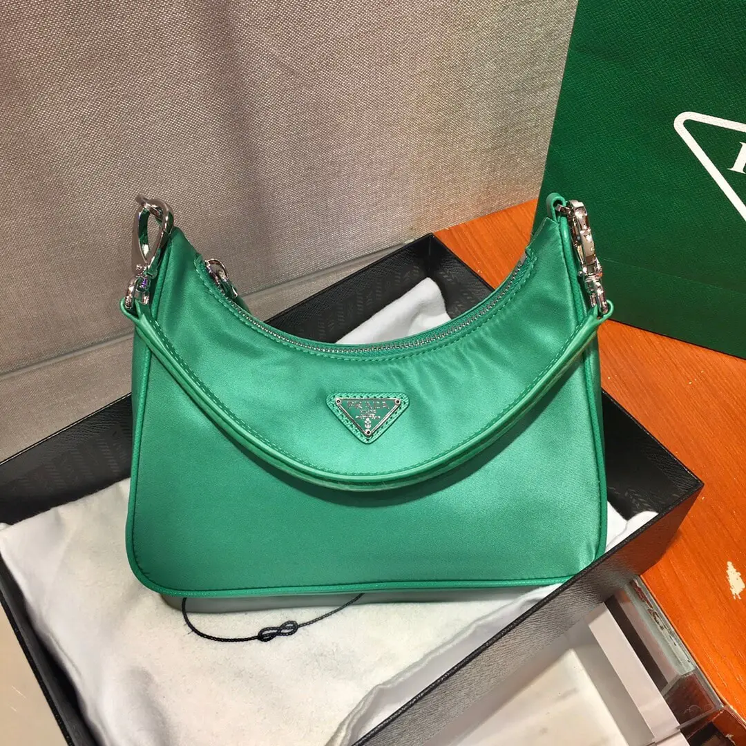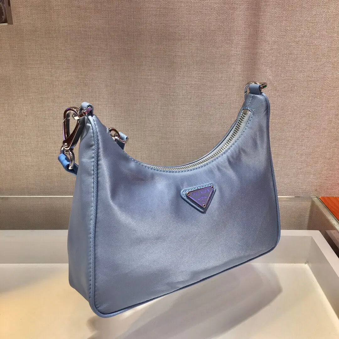 Re-Nylon and Crocodile Leather Hobo Shoulder Bag 1BC204