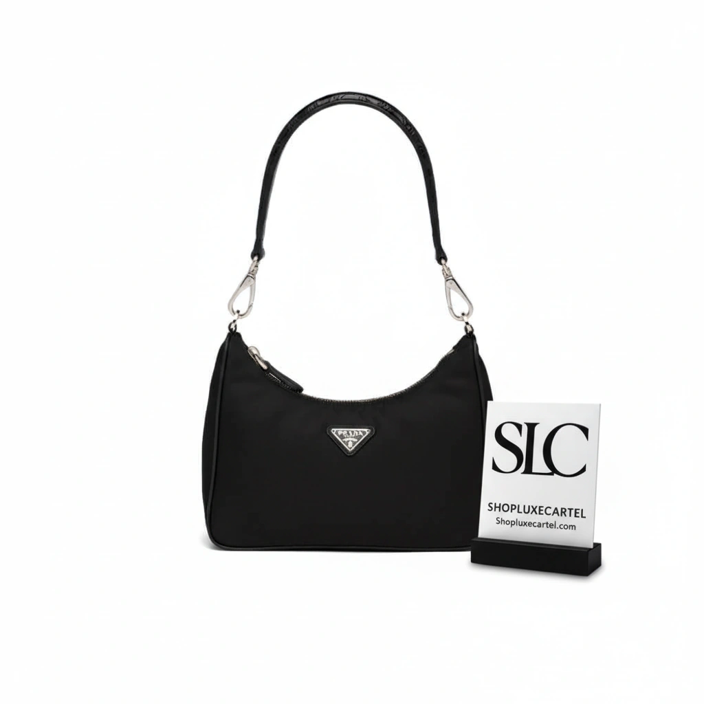 Defined by its harmonious and elegant silhouette, this hobo-style shoulder bag offers a sophisticated blend of modern materials and luxurious textures. The design pairs durable, regenerated nylon fabric with the exquisite finish of genuine crocodile leather, creating a versatile accessory that is both timeless and contemporary.