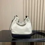 This piece is finished with polished, silver-toned hardware and features a comfortable shoulder strap for easy wear. Inside, the bag reveals a sophisticated lining with a classic geometric pattern, adding a final touch of refined detail to this must-have accessory.