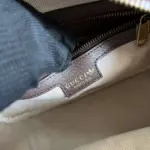 Experience a perfect fusion of retro charm and contemporary style with this compact shoulder bag. Inspired by iconic designs from the ’80s and ’90s, this piece showcases a classic aesthetic reimagined for today’s fashion landscape. The durable, coated crystal canvas is adorned with a sophisticated geometric monogram print, beautifully complemented by smooth black leather trim and a signature striped webbing detail in a classic color combination.