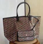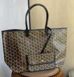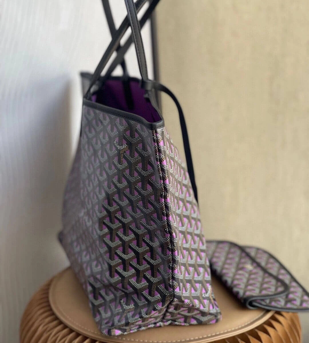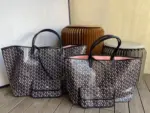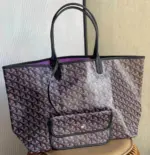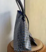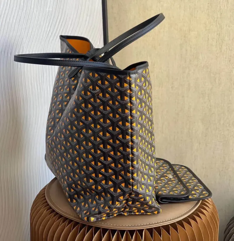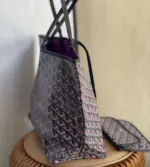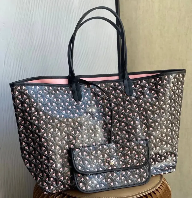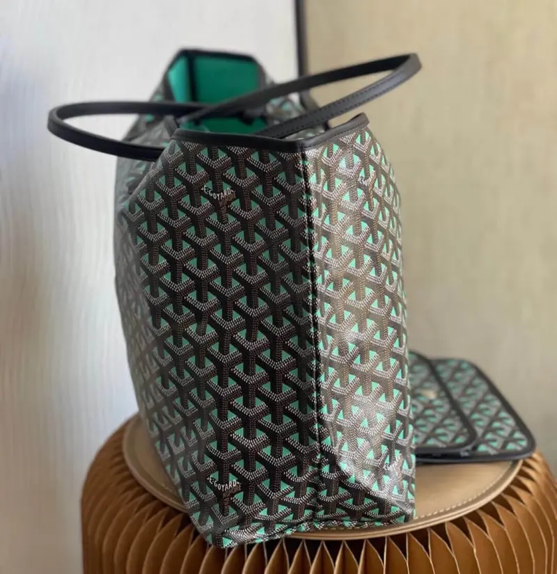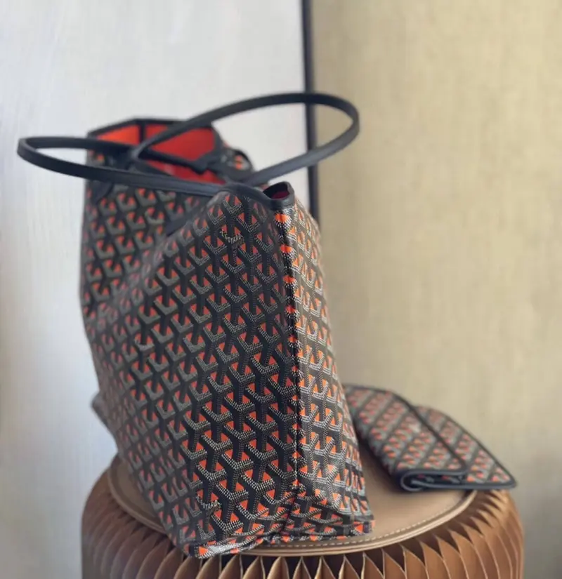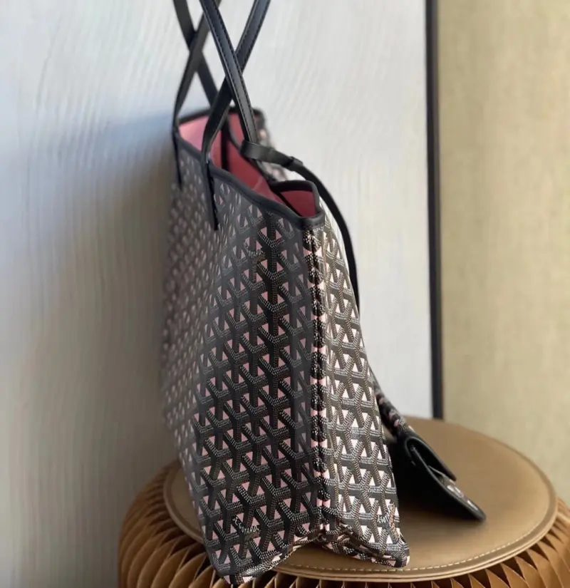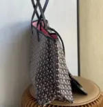 Discover the ultimate in versatile, lightweight luxury with this stunning reversible tote. Crafted from a durable coated canvas featuring a timeless geometric chevron print, this bag offers two distinct looks in one. The innovative design creates a beautiful optical illusion, suggesting a view through to the contrasting interior color. Its extremely light, unlined construction makes it the perfect companion for everything from daily errands to weekend getaways.
