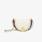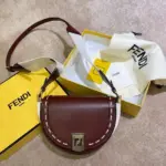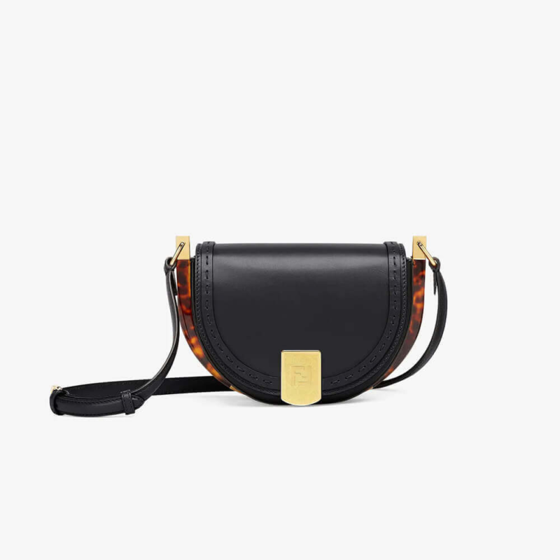 Discover a timeless accessory crafted with exquisite attention to detail. This crossbody bag features a distinctive half-moon, saddle-inspired silhouette that exudes classic elegance. Made from smooth, high-quality calf leather, its structured design is beautifully highlighted by contrasting topstitching and gleaming gold-tone hardware. The unique shape and refined details make it a sophisticated choice for any occasion.