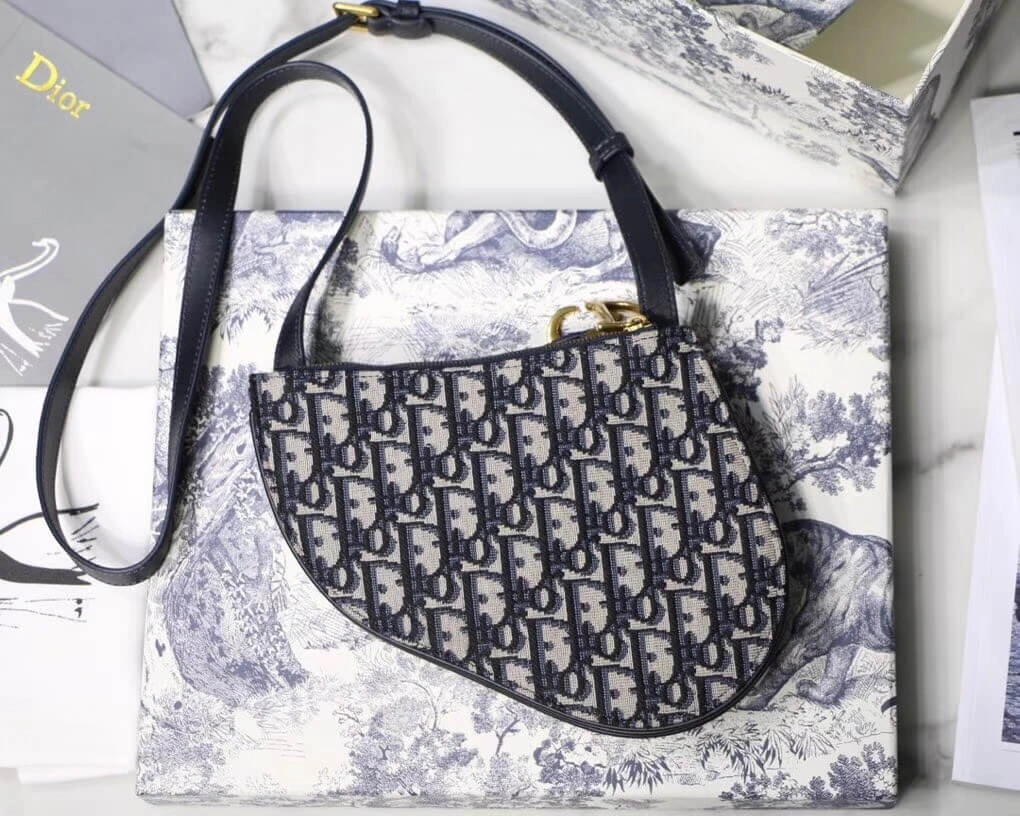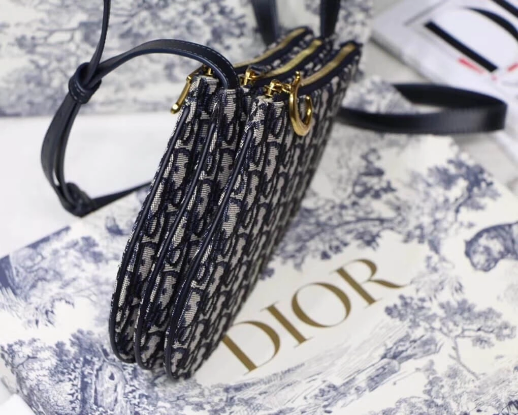 Discover a beautifully crafted clutch designed with a distinctive, equestrian-inspired silhouette. This piece showcases a durable jacquard canvas, featuring an all-over oblique geometric print that adds a touch of classic elegance. Complemented by smooth blue calfskin leather details and finished with aged gold-tone hardware, this pouch bag is a testament to sophisticated design and quality materials.