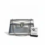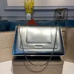 Experience timeless elegance with this beautifully crafted shoulder bag, presented in a stunning silver brushed metallic calf leather. This piece is designed for the modern fashion enthusiast who appreciates sophisticated details and luxurious materials. The bag’s structured silhouette is complemented by a distinctive, eye-catching closure, making it a perfect accessory for both day and evening ensembles.